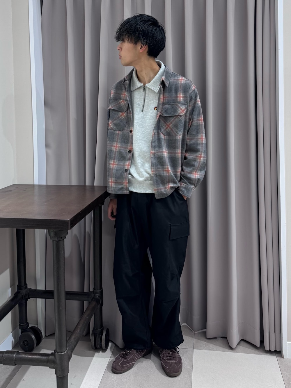 パンツはDOORSの吸湿発熱のワイドパンツ。程よい太さでどのスタイリングにも合わせやすいのに加えて、機能面も充実のパンツ。