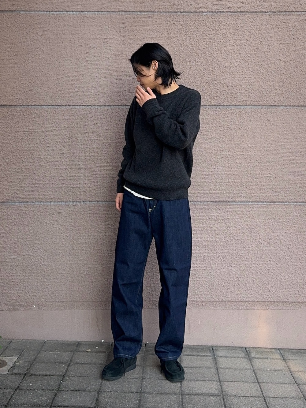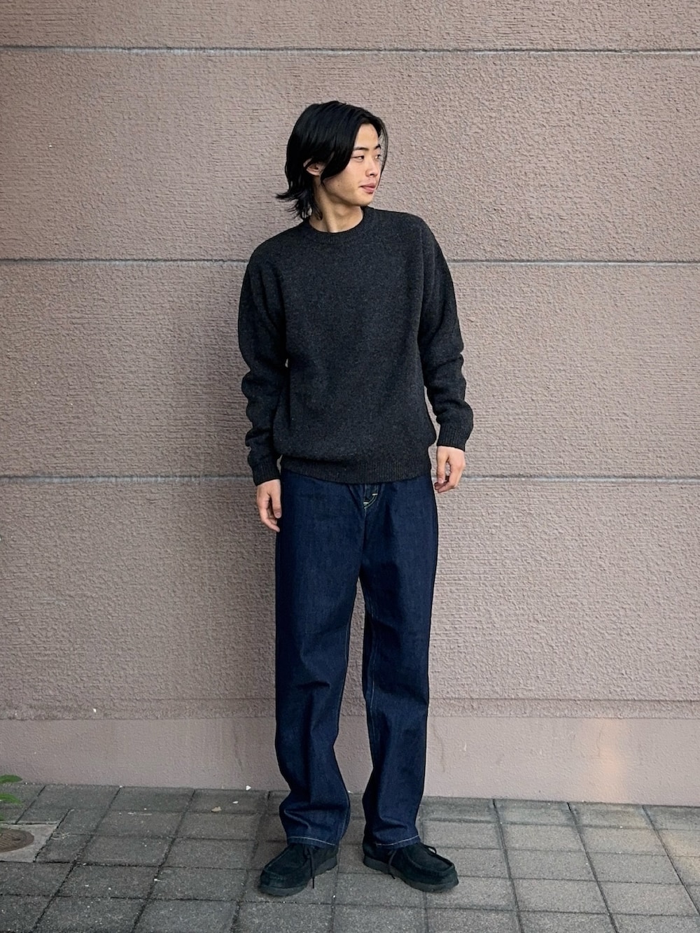 今回のコーディネートはチャコールのクルーネックのニットに、Leeのデニムを合わせたコーデです!!両方のアイテムとも、シンプルで使いやすいアイテムです!!ニットは着心地が良く、暖かいので、これからの季節に多くきていただけます!ぜひ参考にしてください!