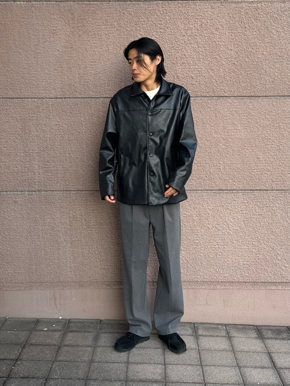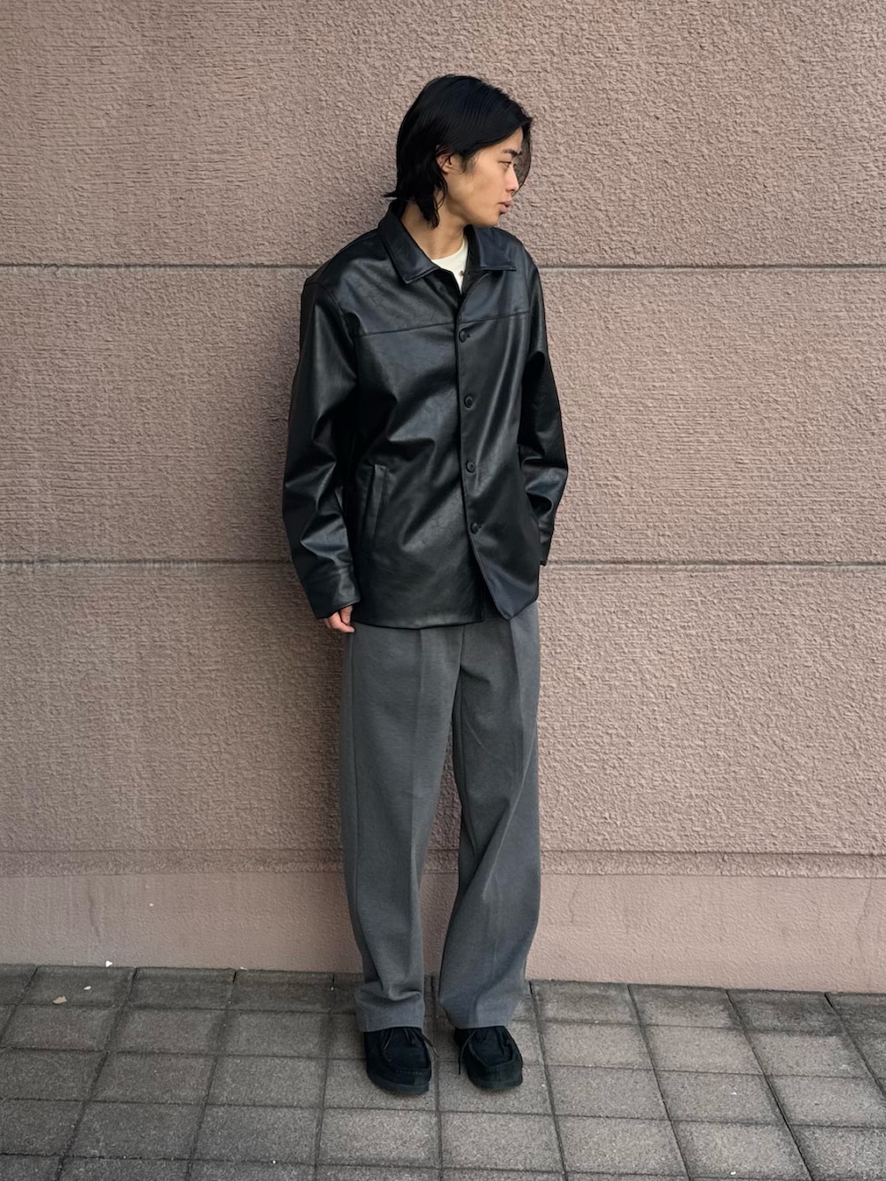 フェイクレザーになってるので軽く、楽に着ていただけます!!スラックスは楽に履けてシルエットもいいのでとてもおすすめです!是非参考にしてください!