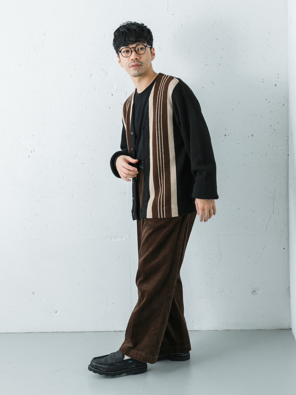 パンツはコーデュロイで太畝がカジュアル感がありながら太過ぎないスマートなシルエットで格好良く決まります◎