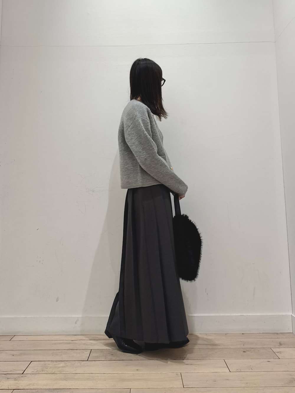 カーディガンはベーシックなノーカラーですが、金ボタンがアクセントになり上品さをプラスしてくれます◎