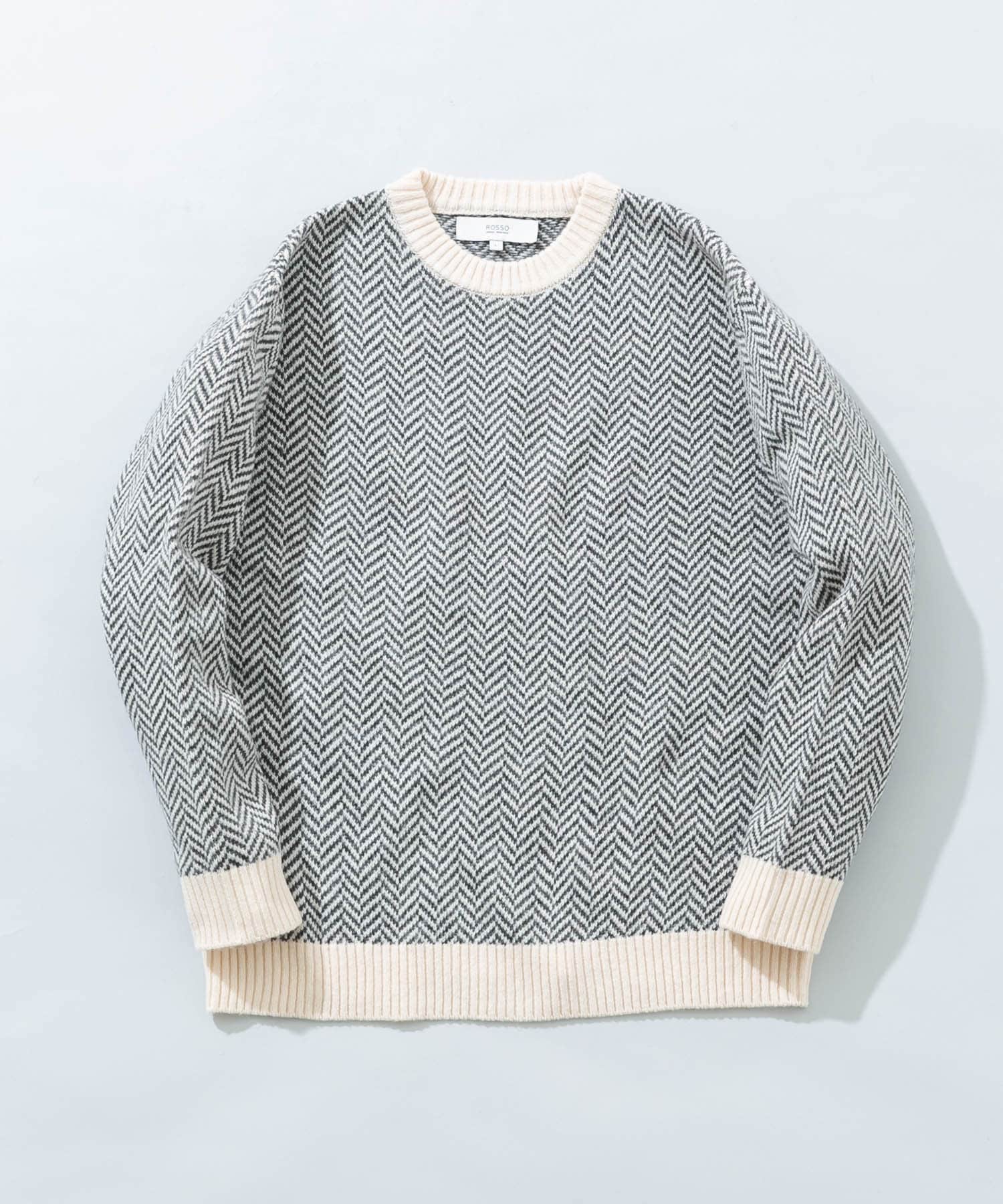 『XLサイズあり』ヘリンボーン柄クルーネックニット
