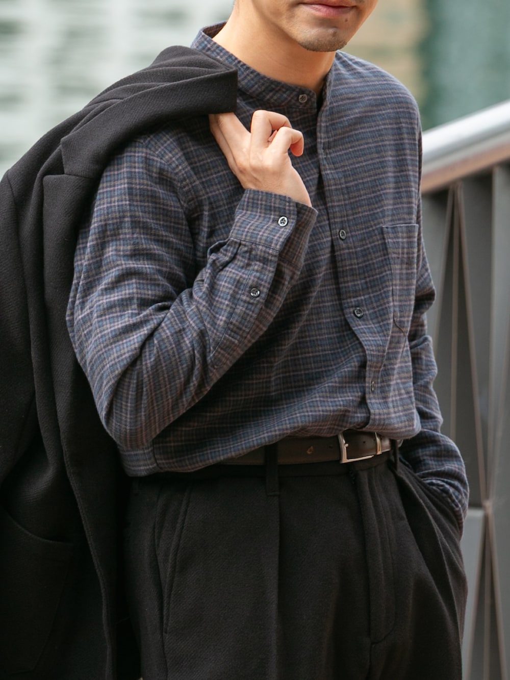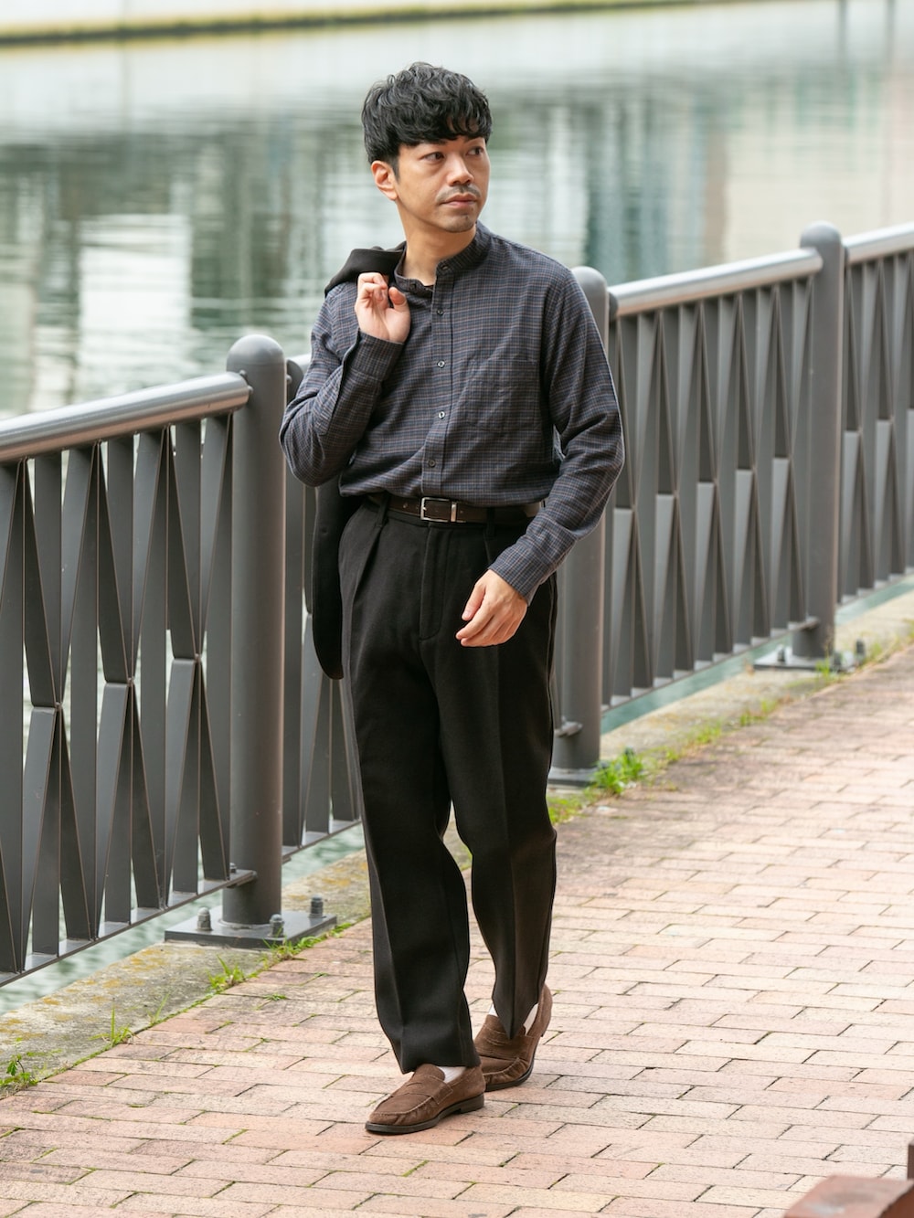 タックインでキレイな感じですがチェック柄が遊び心があり決めすぎないのがポイント。