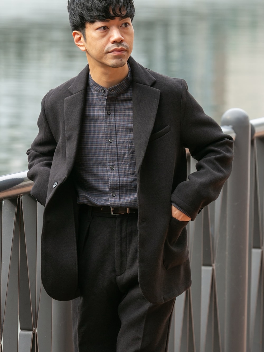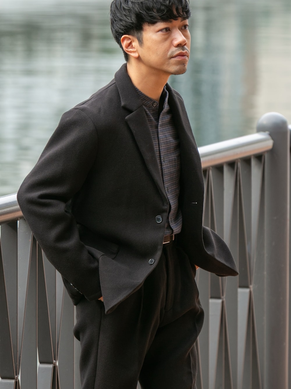 カジュアル寄りのセットアップなのでややゆとりがあり気軽に着られます。