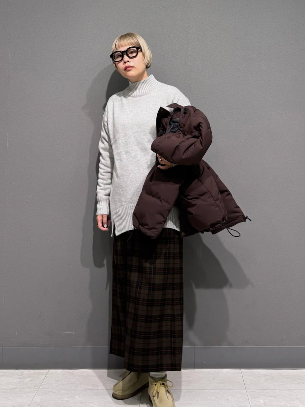 ニットはルーズなサイズ感で