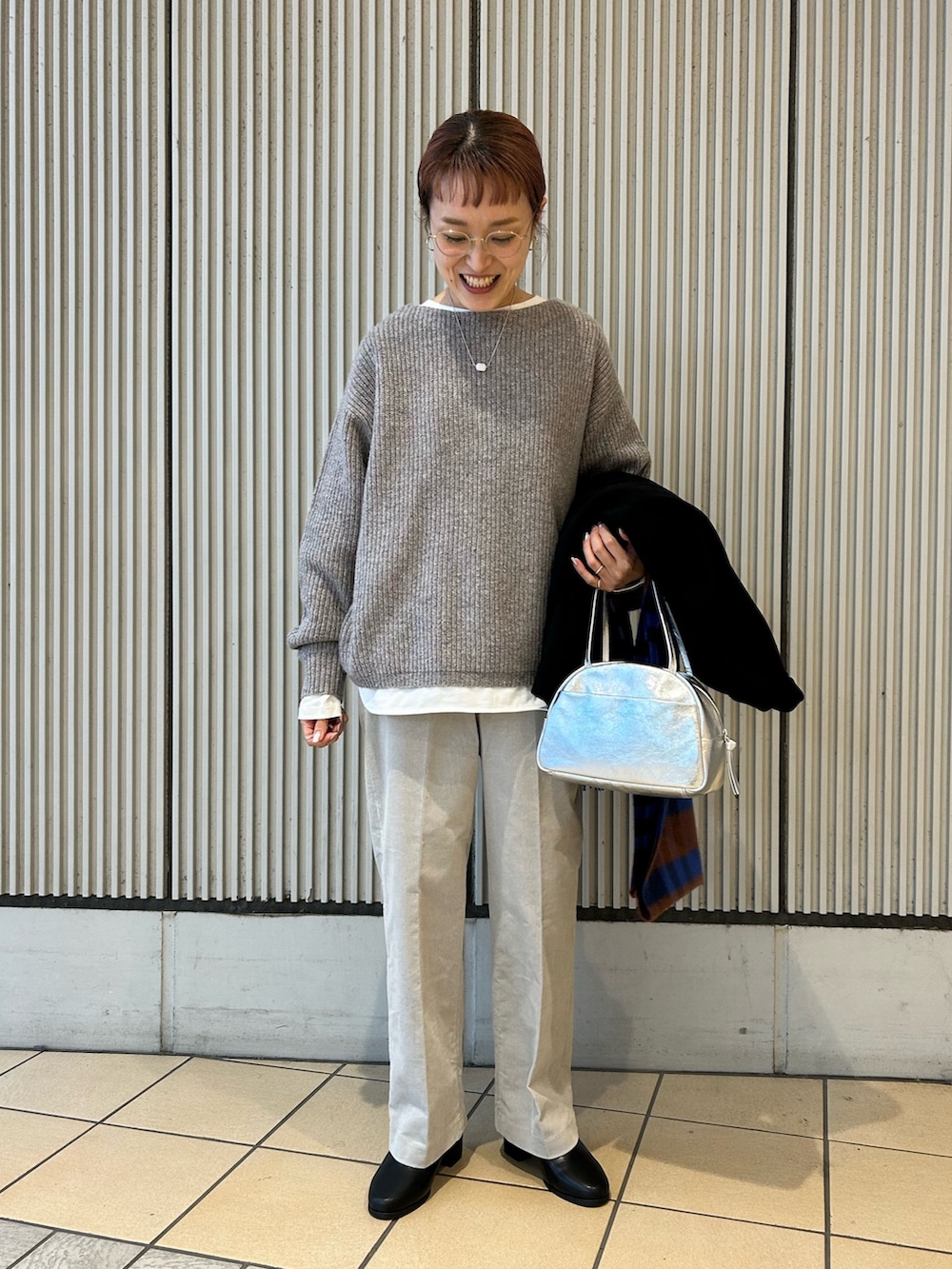 グレーのワントーンコーデに、かぐれのオススメアウターを合わせました。