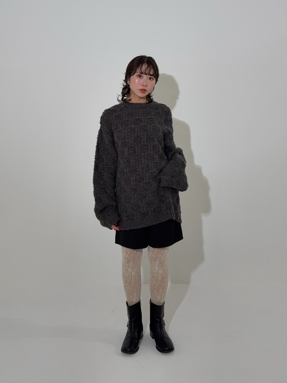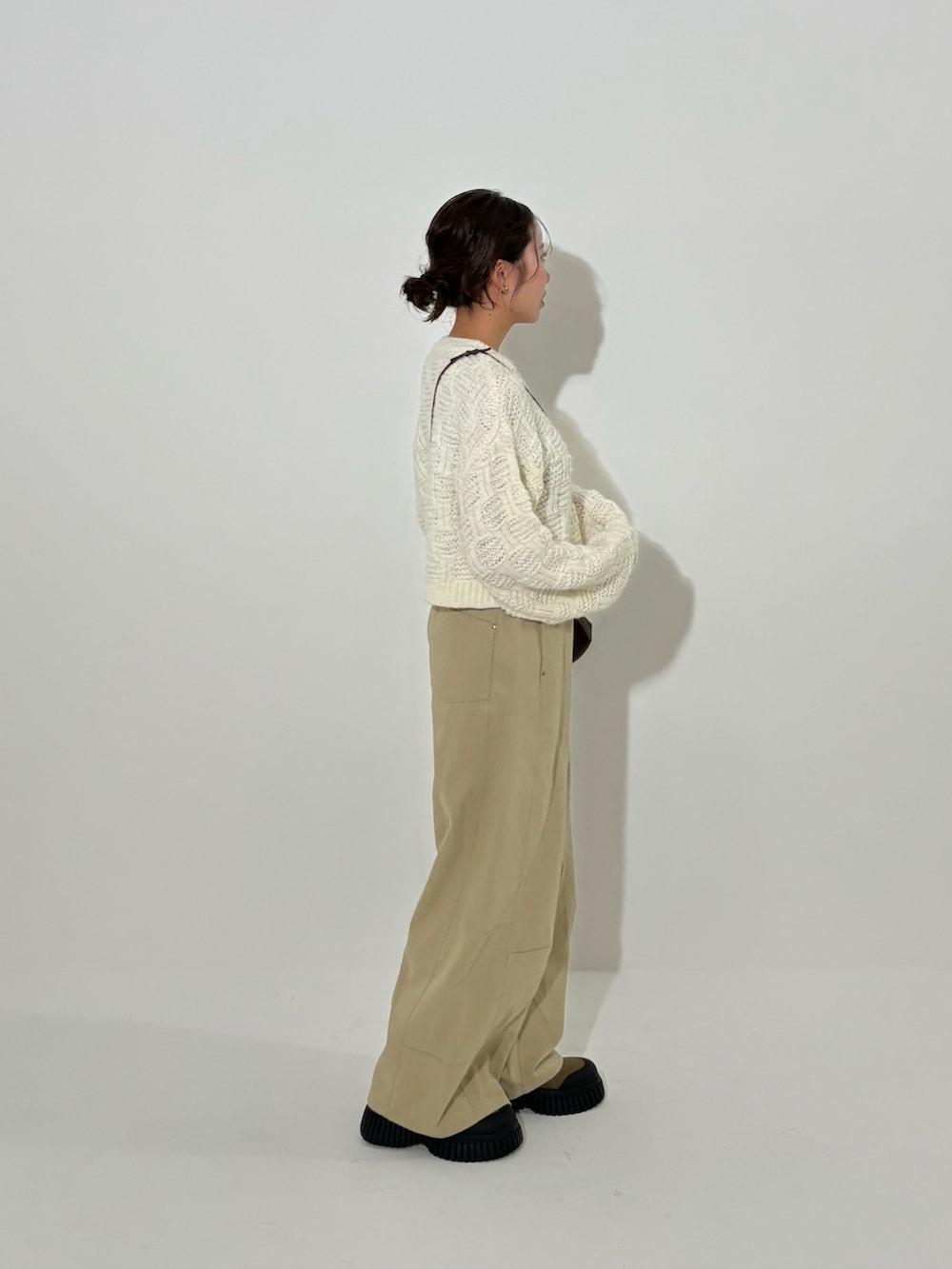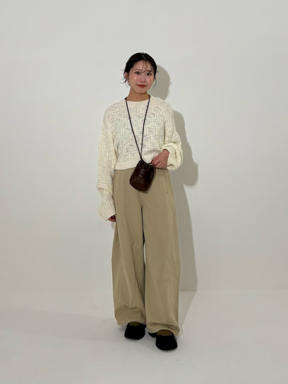 丈の長さが選べてぽこぽこ感が可愛いニットを使ってカジュアルコーデを組みました🤎