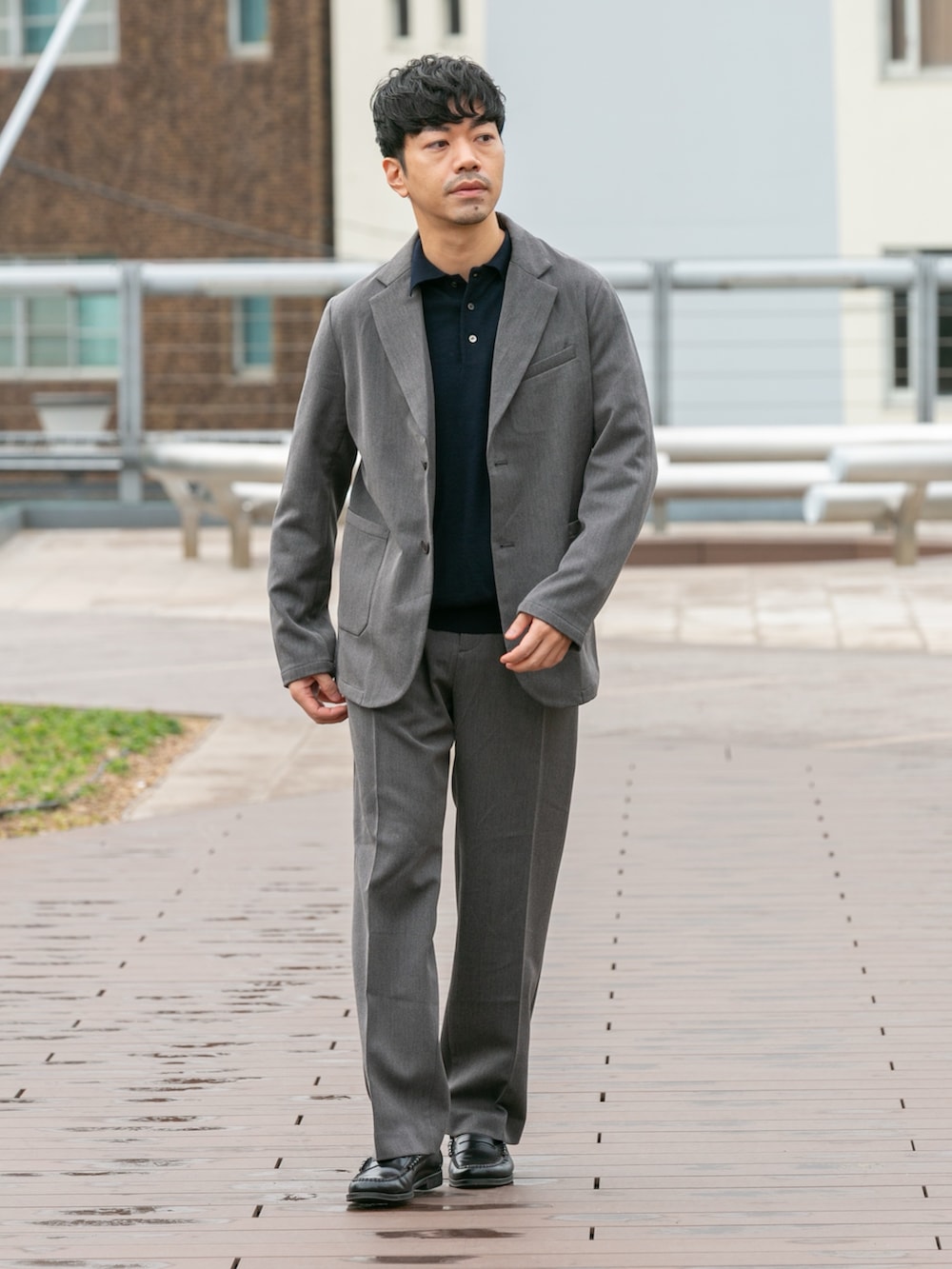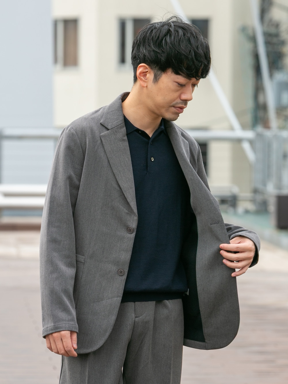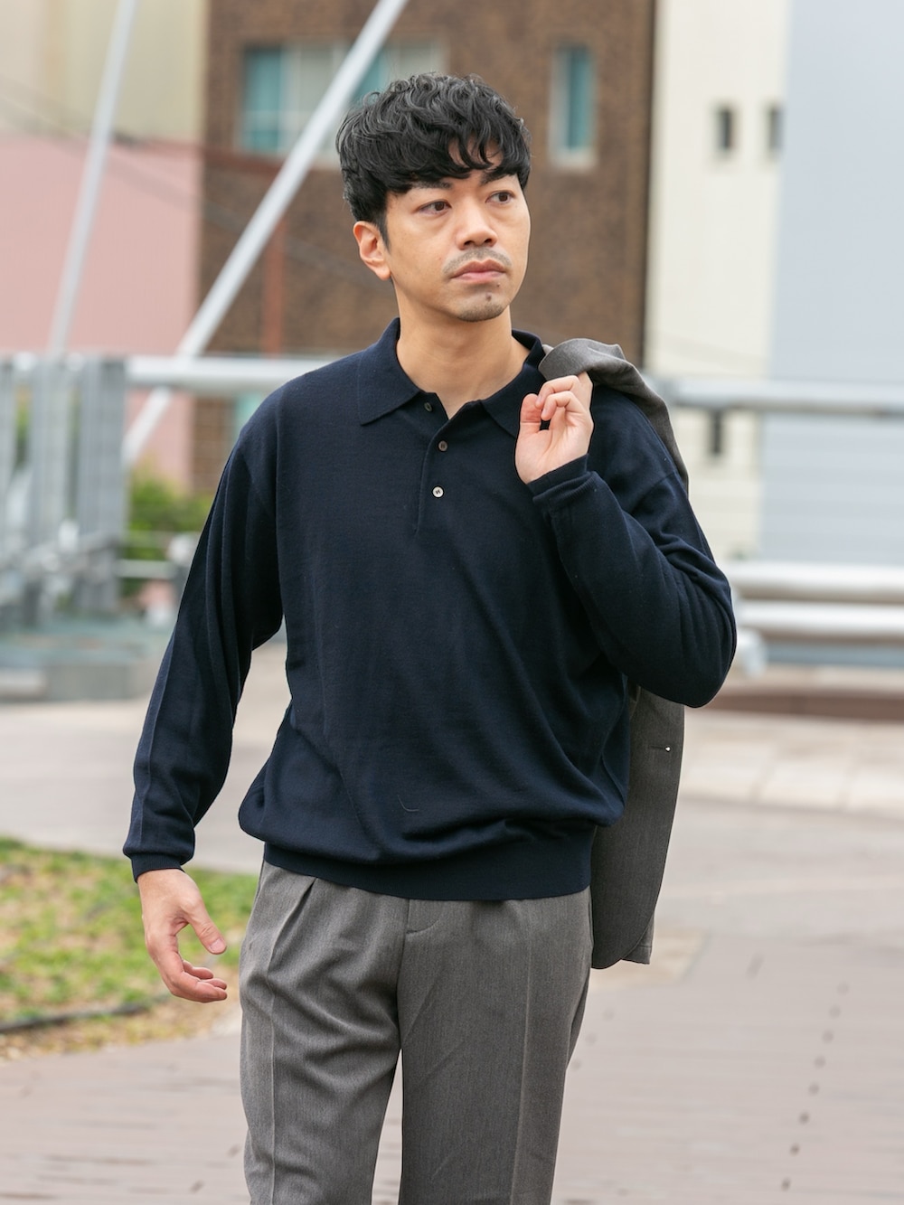 上品なニットポロシャツを合わしてお仕事にもオススメ