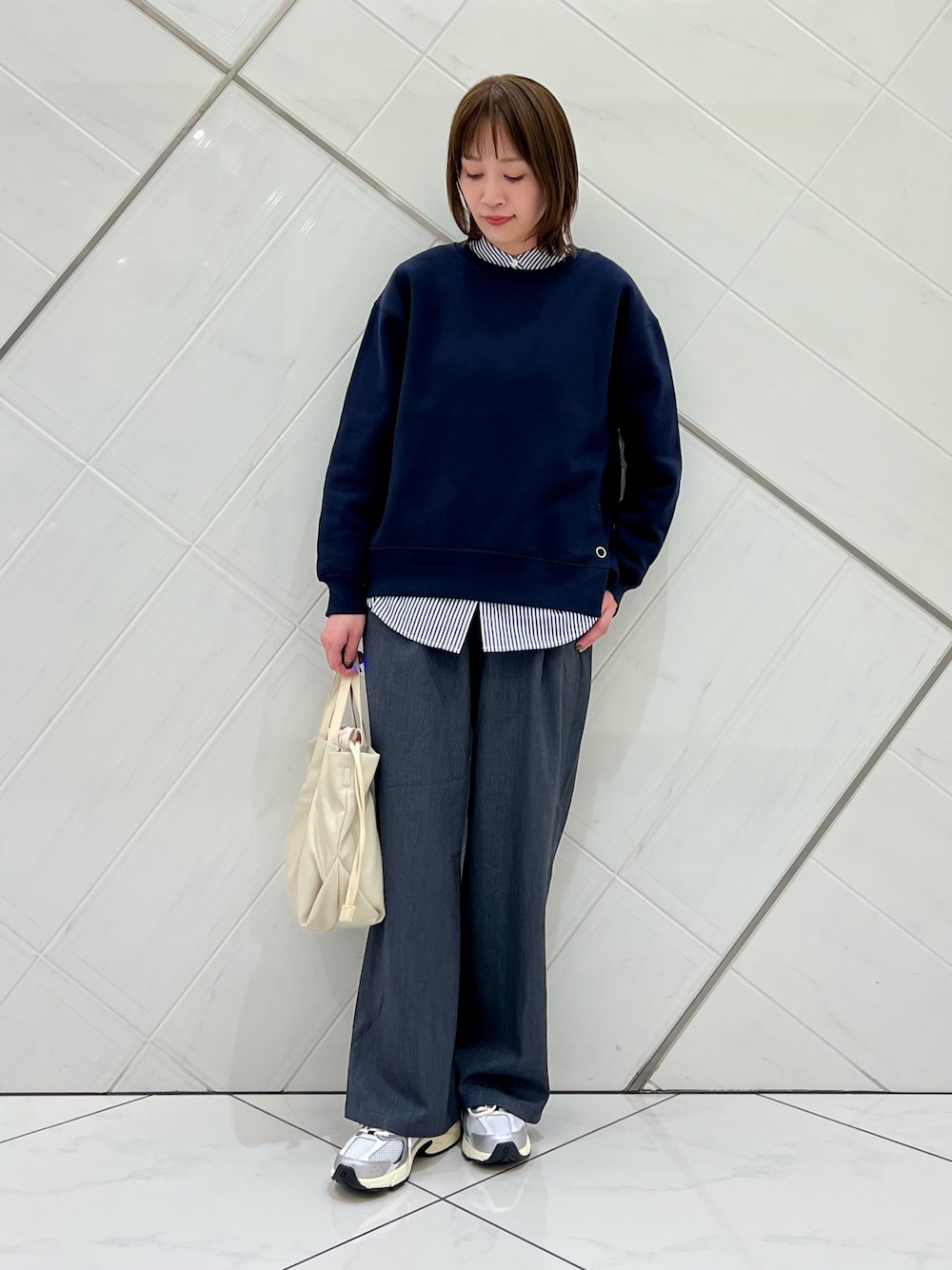 ゆったりとしたサイズ感ですが、着膨れ感もなくコーディネートにも取り入れていただきやすいアイテムです。