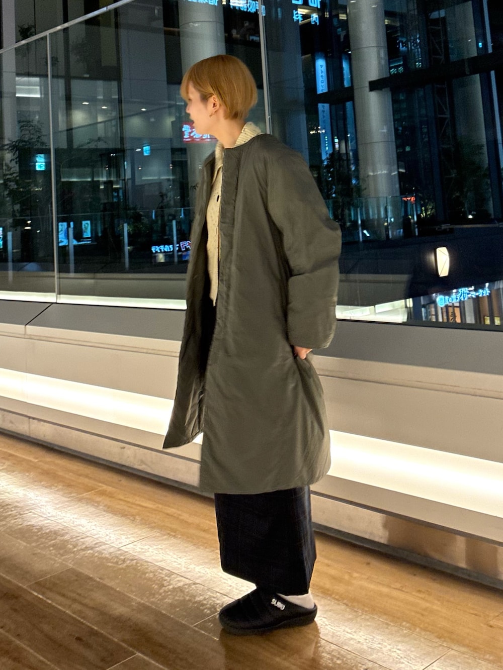 ノーカラーコートは、軽くて暖かい!!この位の丈感のコートがあると便利ですよね!!