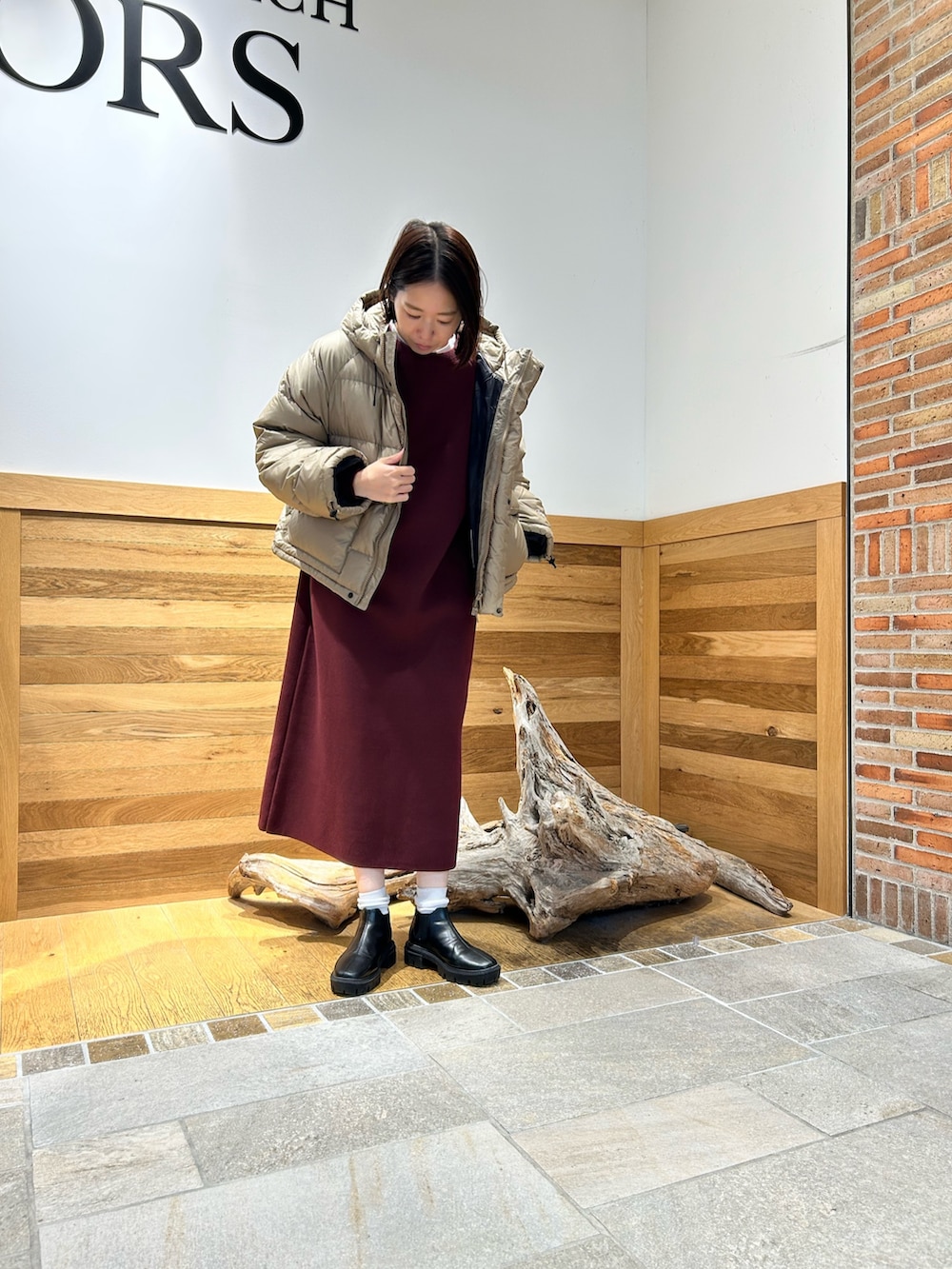 楽ちん、暖かい、かわいい、三拍子揃ったワンピースのご紹介です。スエットのようなハイゲージのニットなので、カジュアルすぎず合わせやすいです!ショート丈のダウンと相性ぴったりです!