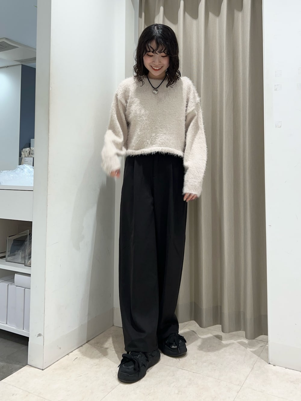 短丈でデコルテが広く空いてるデザインなのでニットなのにスッキリ着れます♡