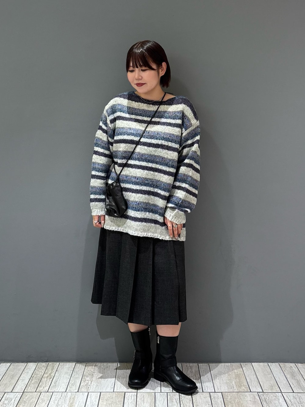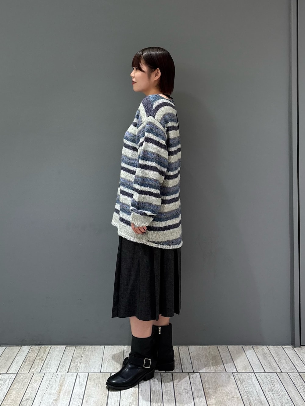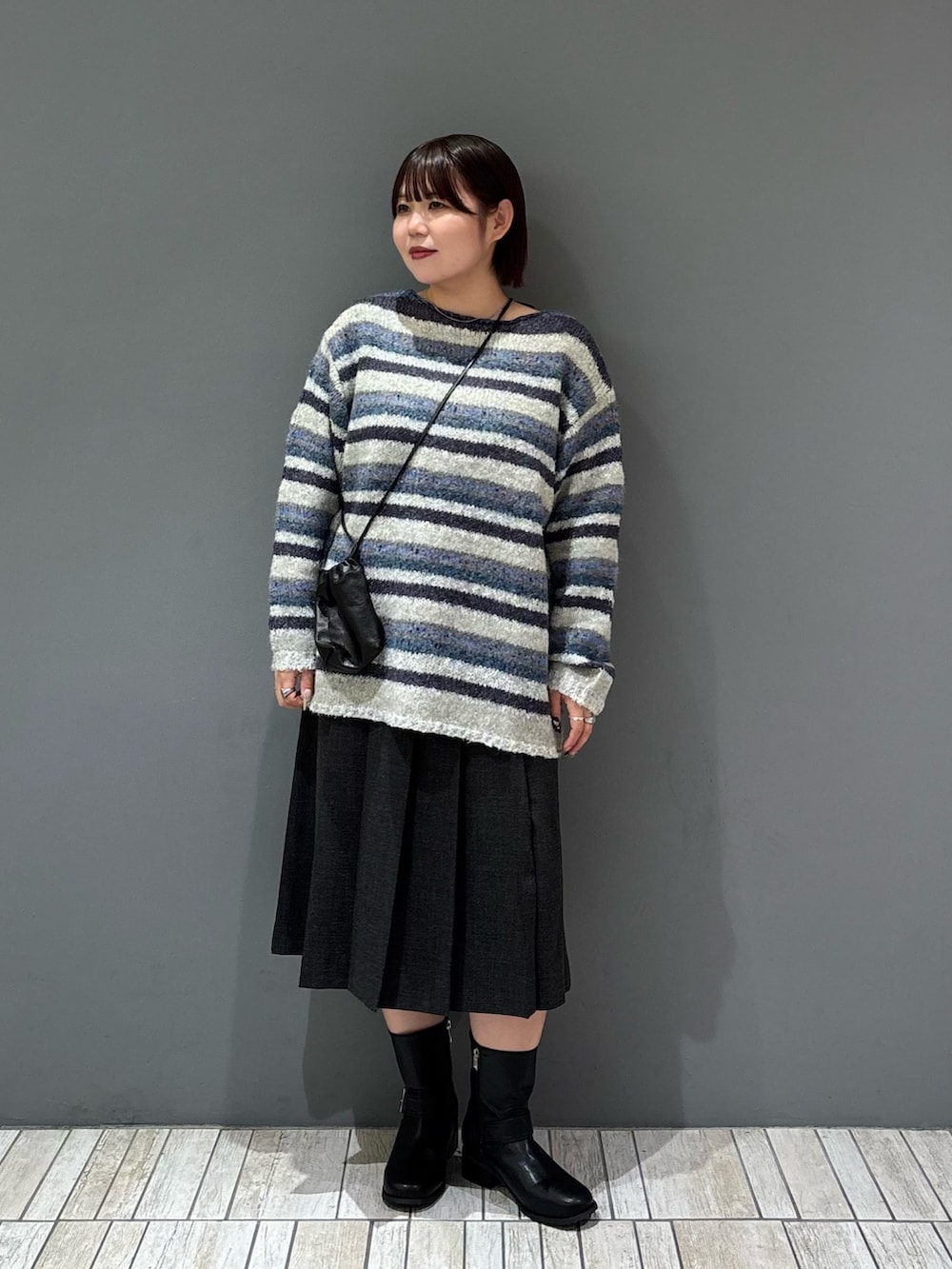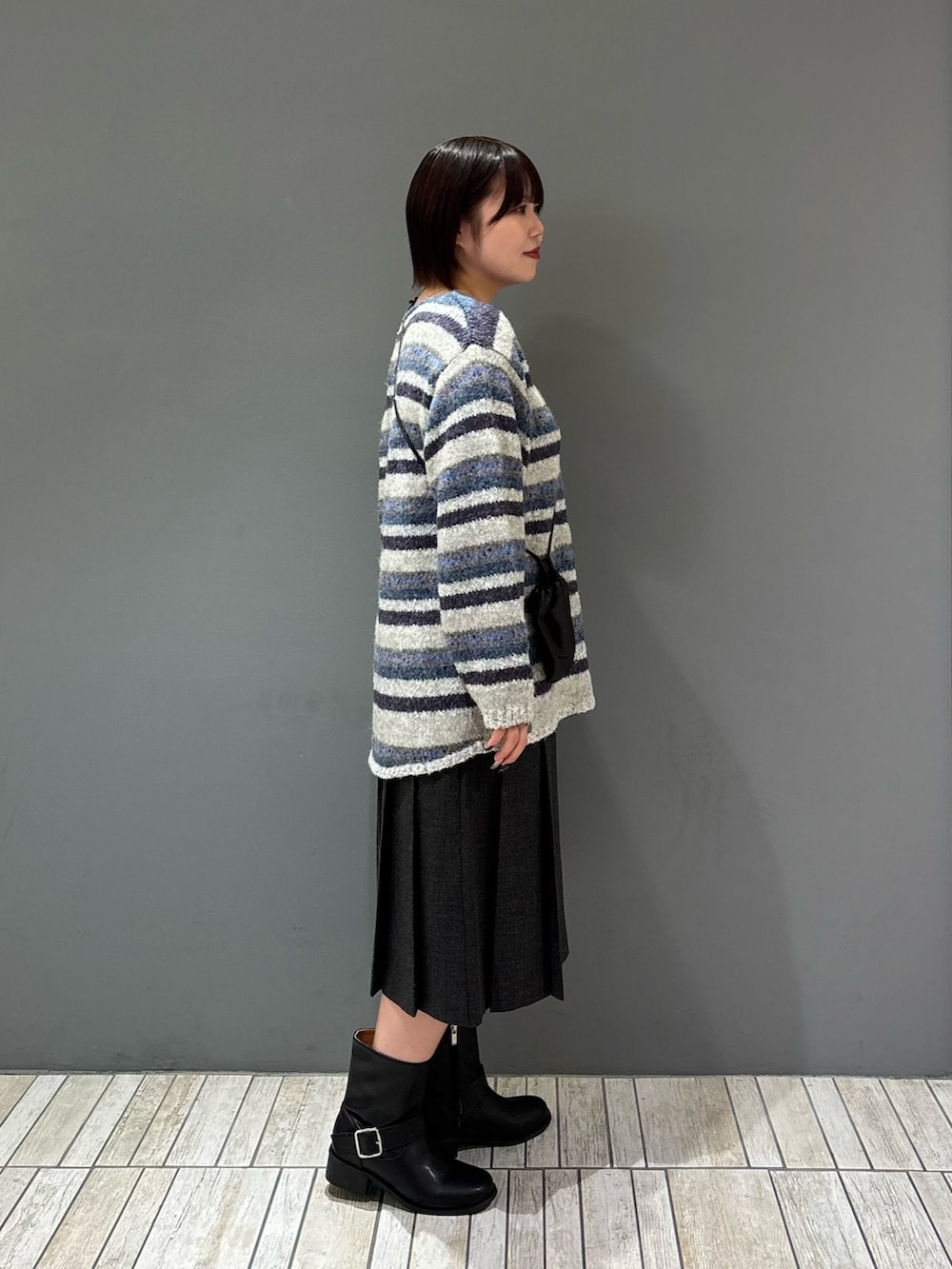 骨格ストレートさんがオーバーサイズのニットを着るなら、フレアデニムやショートパンツ×ブーツなどスッキリしたアイテムの組み合わせだったり、ベルトでウエストマークしたりと骨格ストレートさんの強みを出すと着膨れ感も抑えながらオシャレを楽しめますよ🫶🏻私はBLUEをリアルバイ!!