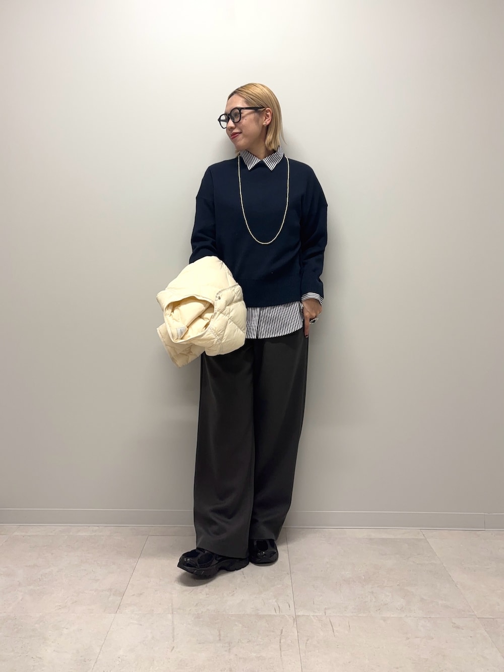 パンツは滑らかな落ち感があり、ワイドながらも絶妙なストレートのシルエットがラインをキレイに見せてくれます!◎お洗濯もでき静電気防止など扱いやすく冬に嬉しい昨日も満載です♪