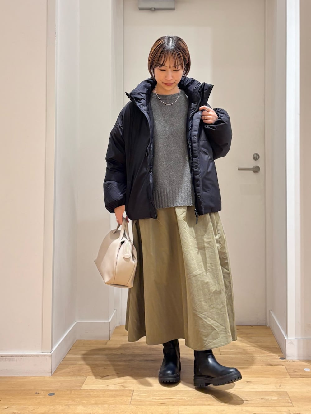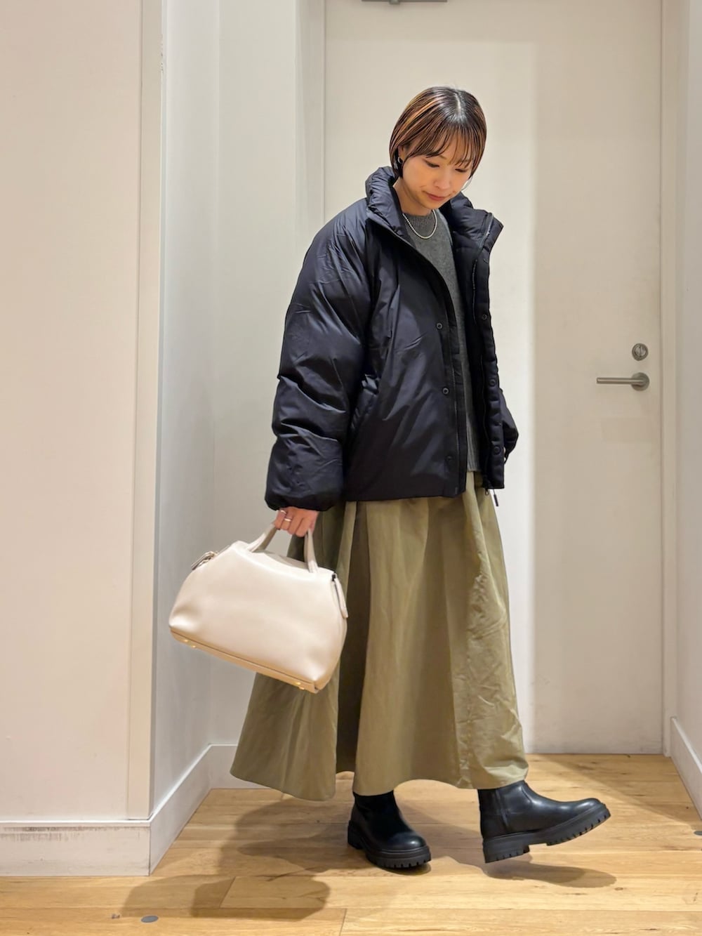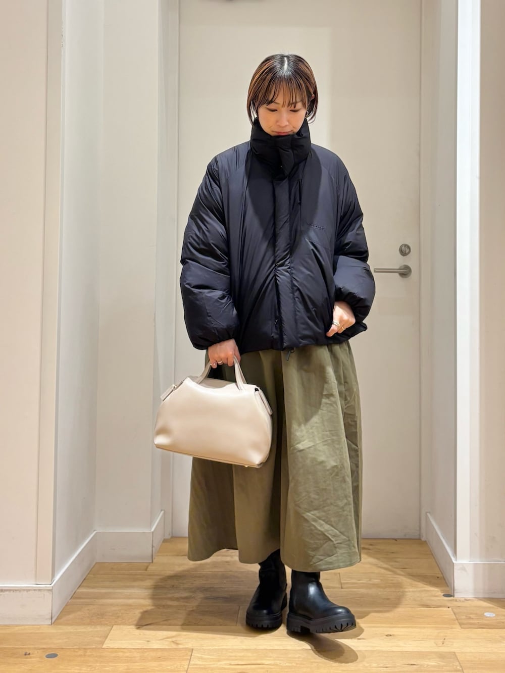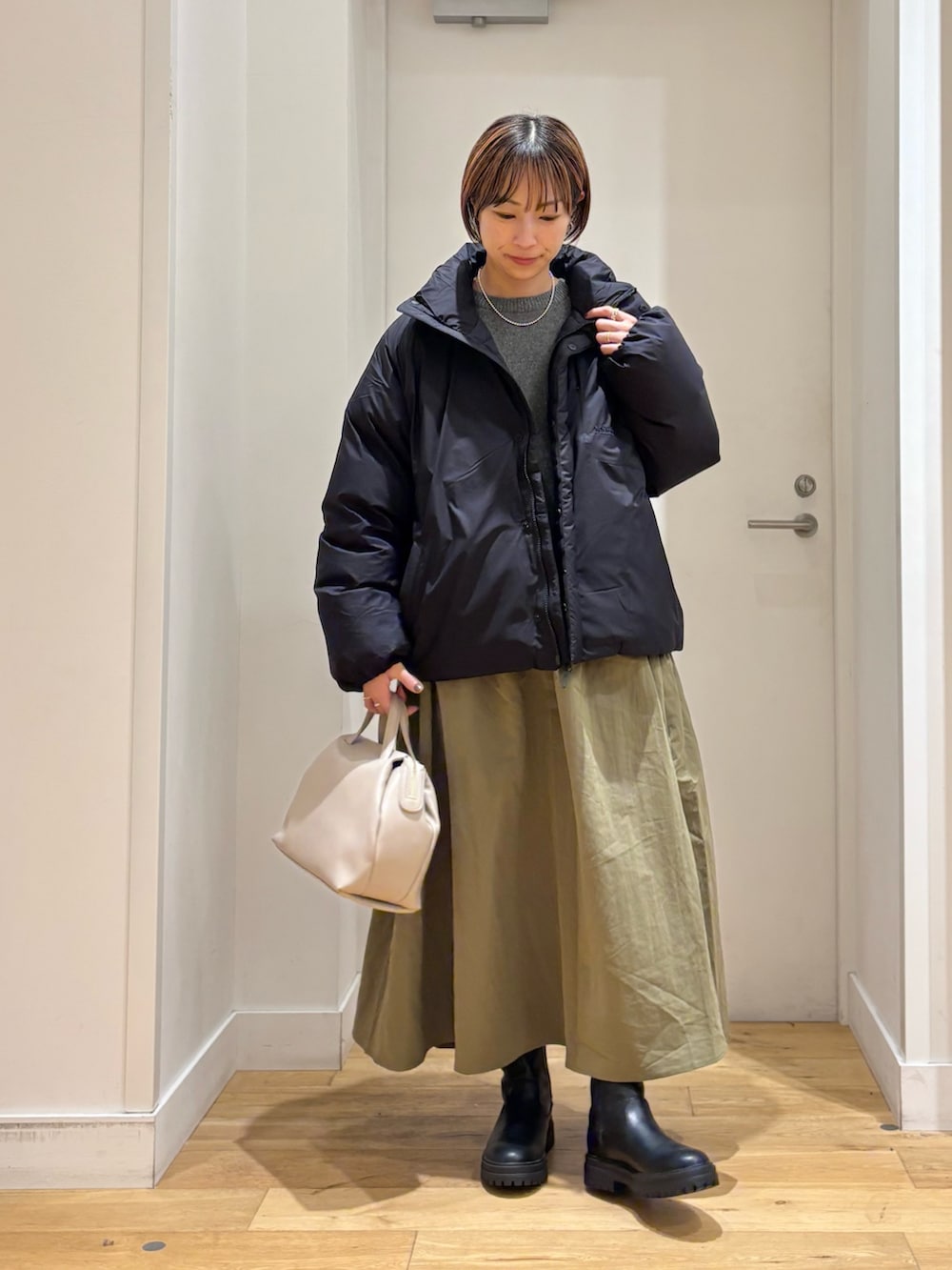 スッキリとした着丈なので、スカートやワイドパンツ、ワンピースなどバランス良く着用していただけます◎