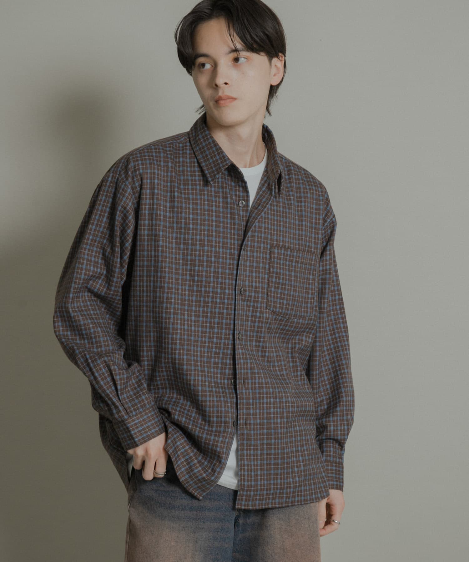 レトロ感のあるネイビーアーガイルに、柔らかいグレーチェックのシャツをレイヤード🧐