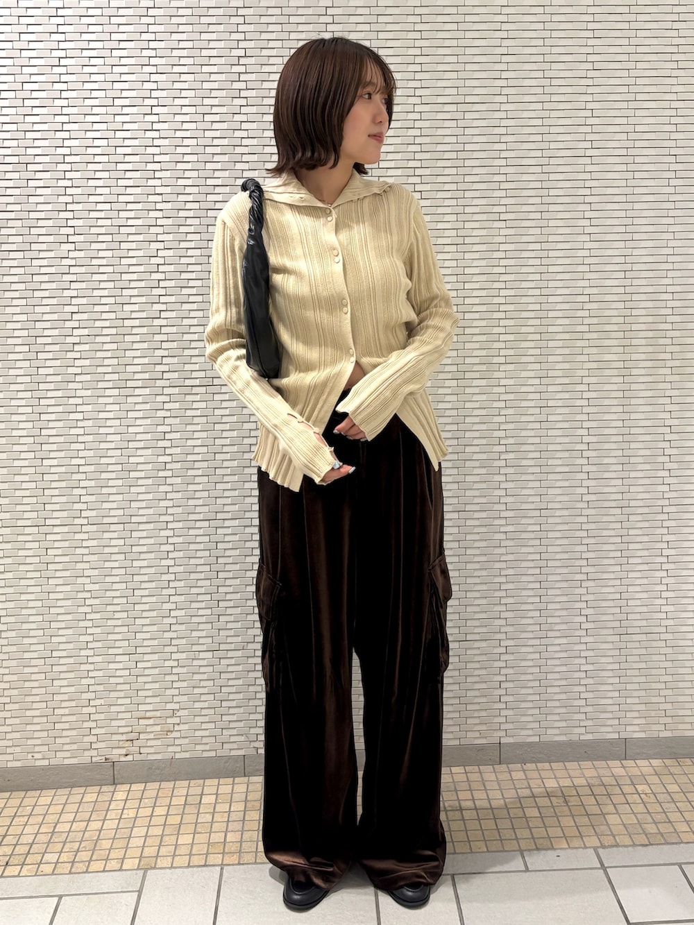綺麗めだけど、ベロアのカーゴパンツで大人カジュアルにスタイリングしてみました🌵