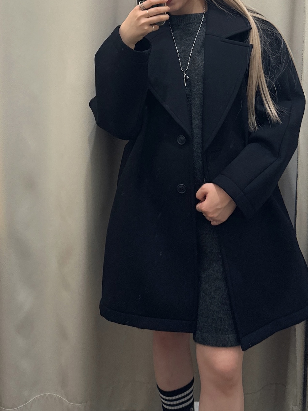 ニットでゆるっと、ジャケットでカチッとまとめたコーディネートです🙂↕️