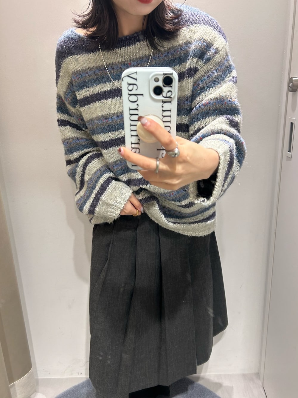 新作のボーダーニットとプリーツスカートを合わせた甘めなコーデにしてみました✨