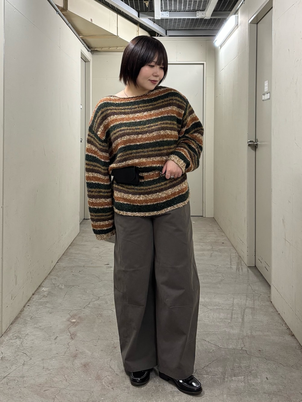 ・オーバーサイズのニットなので、ポーチベルトで流行りを取り入れつつウエストマークすることで寸胴にならないようにしてみました.ᐟ.ᐟ.ᐟ