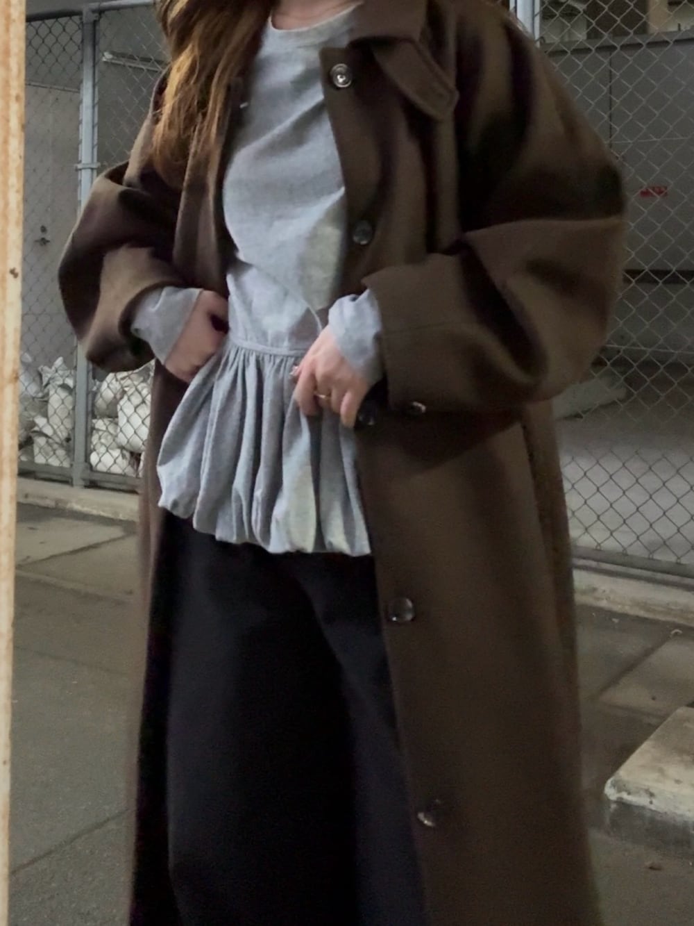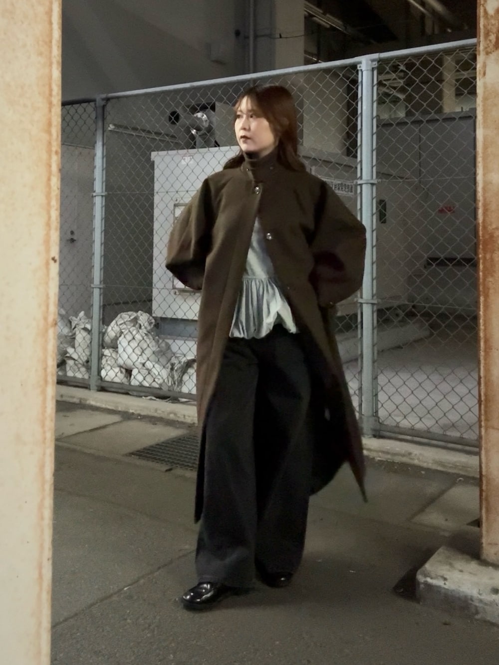 ロングコートは首元を立てて使っていただけるので、マフラーなしでも真冬の寒さを凌いでいただけます!中に分厚めニットも仕込めるアウターです!サイズ展開があるので低身長の方でも着ていただけます🧥