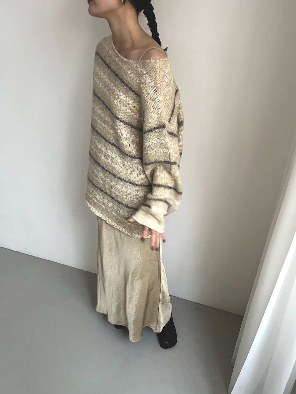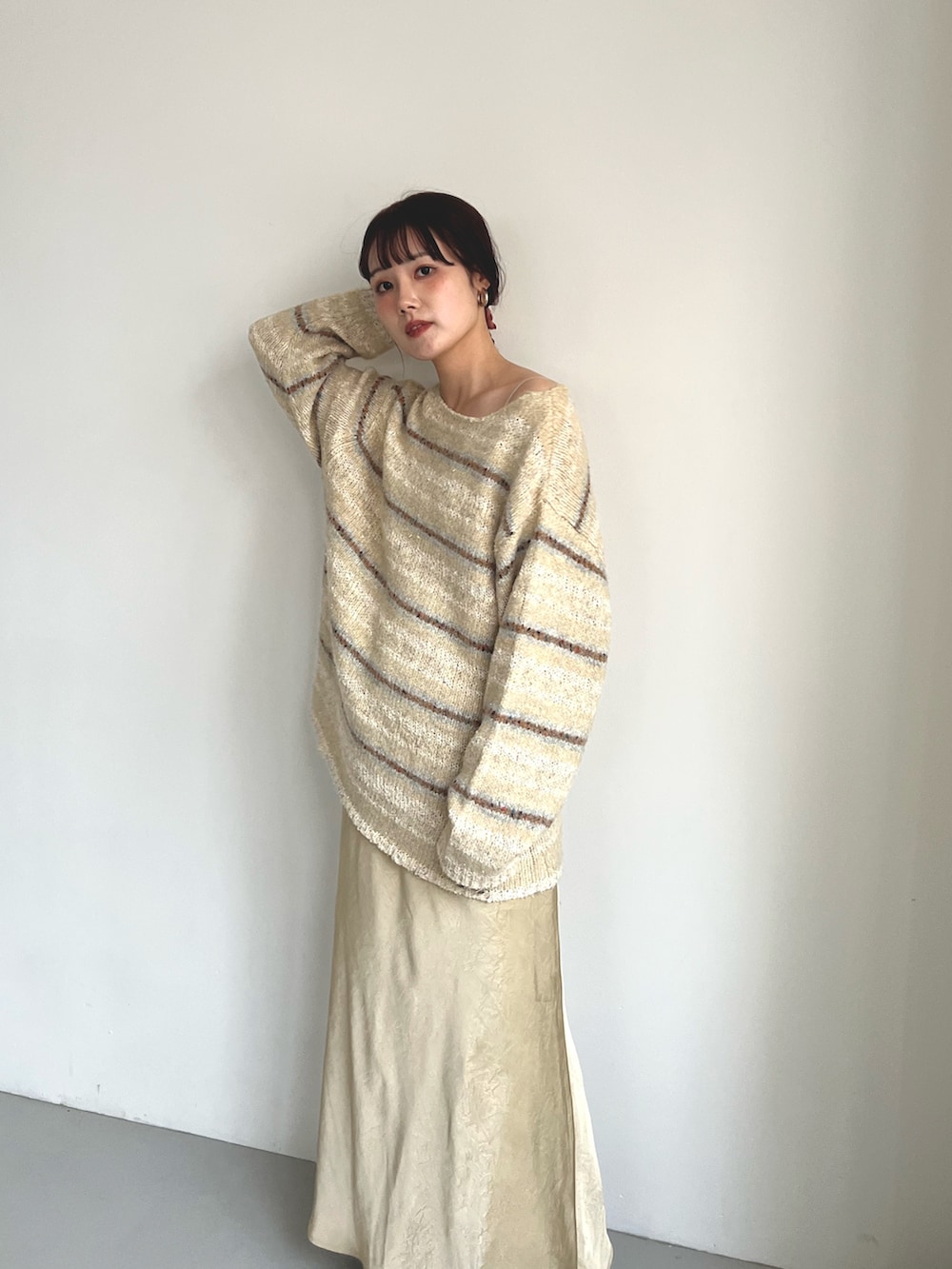 ボーダーニットにサテンスカートで大人カジュアルに着てみました!