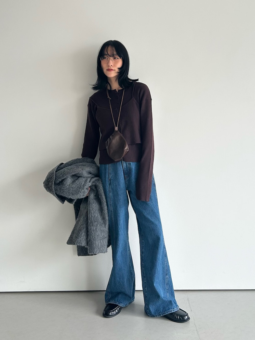 ビスチェSETのニットとデニムを合わせてカジュアルスタイルに着てみました。