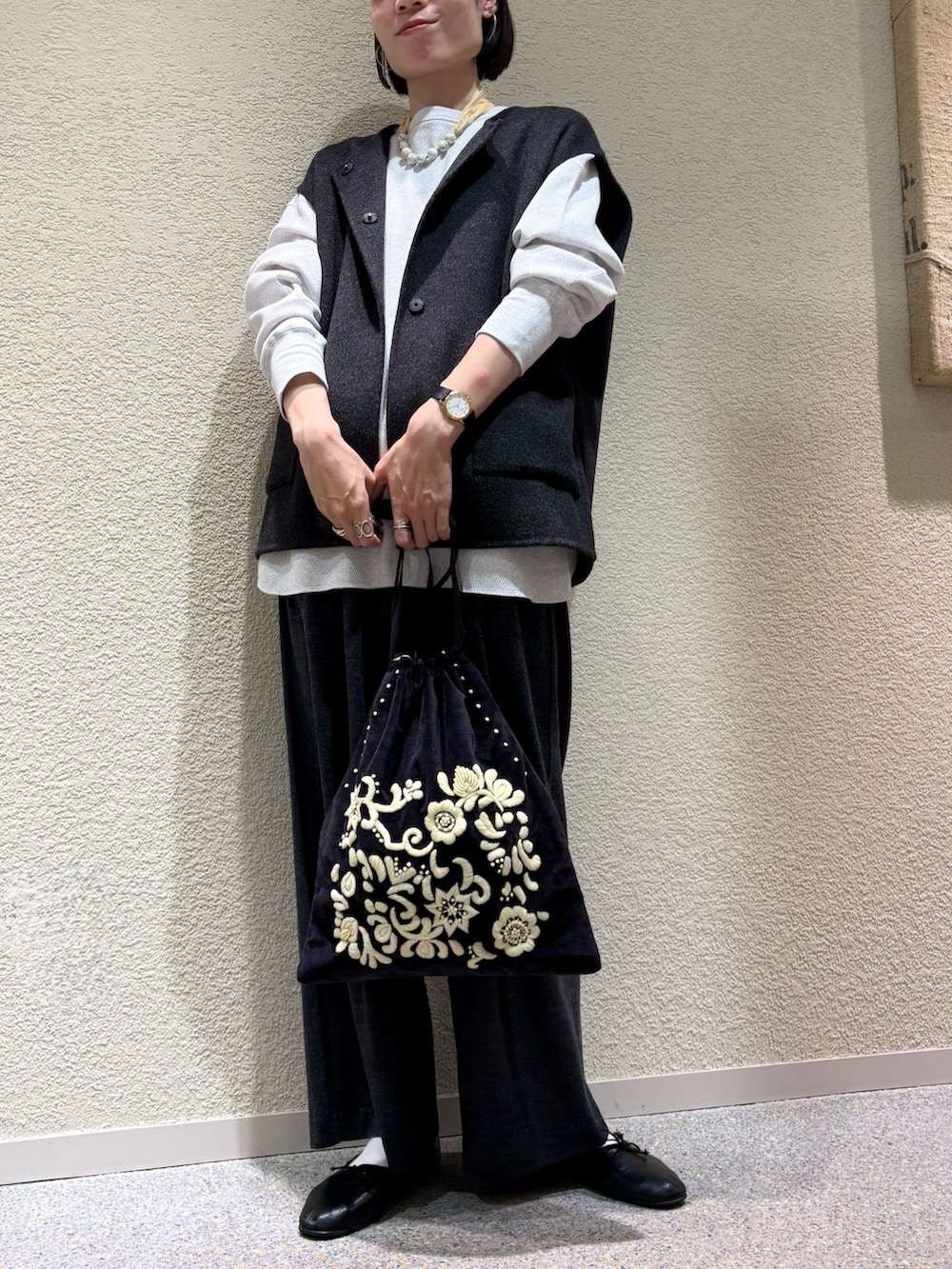 薄すぎず、分厚すぎずのちょうど良い生地感で、1枚で着用しても可愛いですし、今の時期だとレイヤードスタイルに使用するのもオススメです。