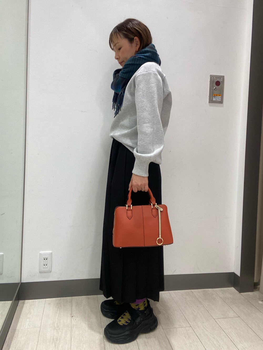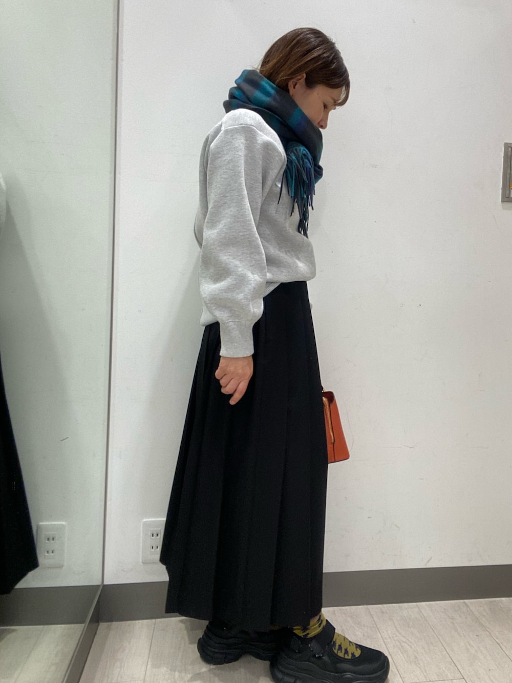ニットはスウェットっぽいデザインで、パンツにもスカートにも合わせやすくて可愛いです!