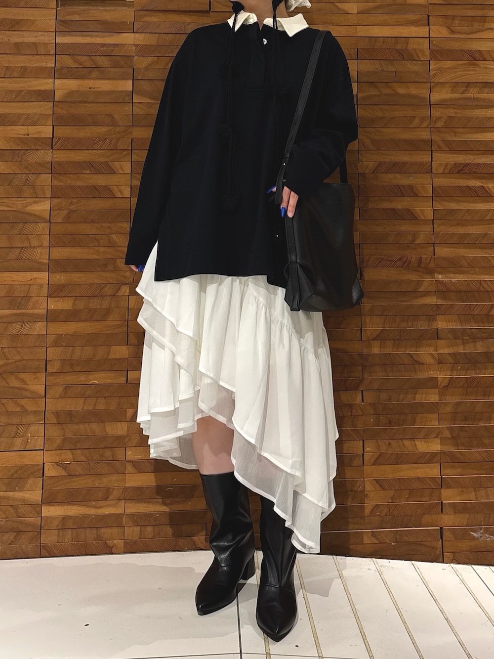 スカートはアシメデザインが可愛く、下にデニムを履いても可愛いと思います◎