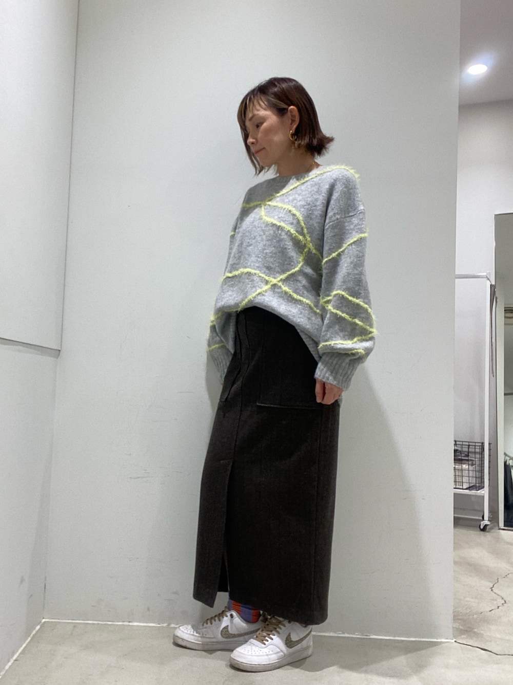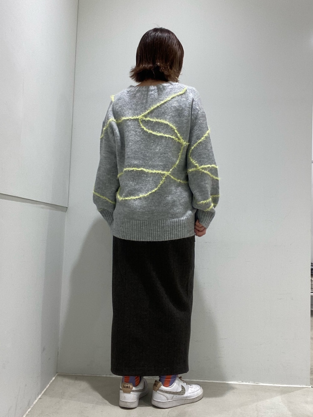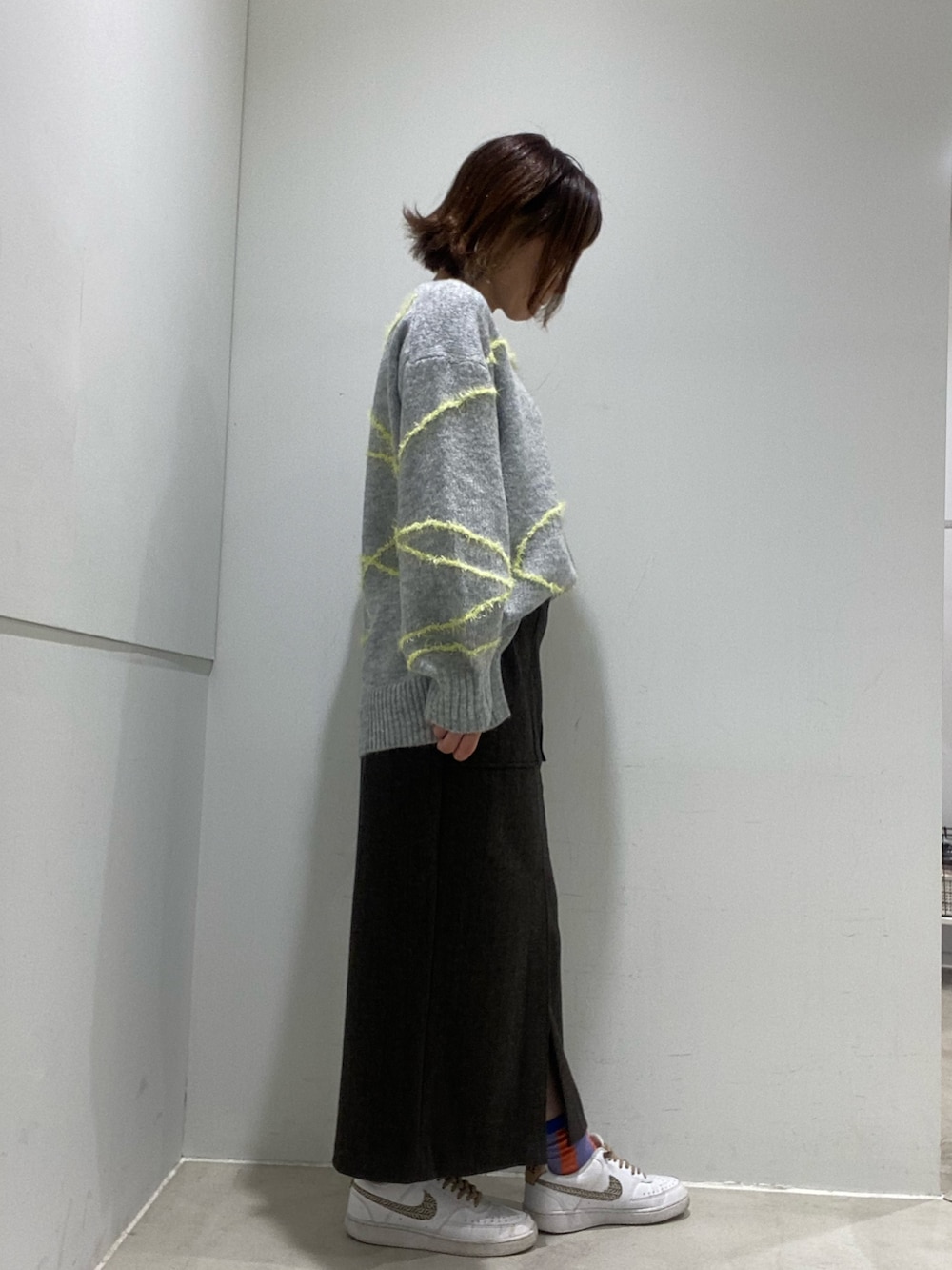 シャギーニットはイエローのラインとルーズなシルエットがとっても可愛いです。