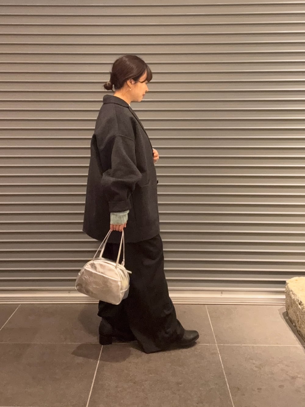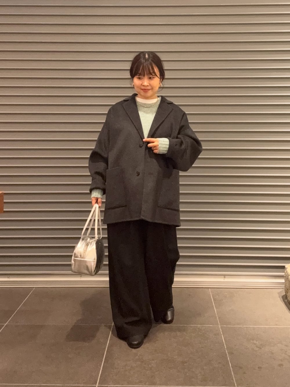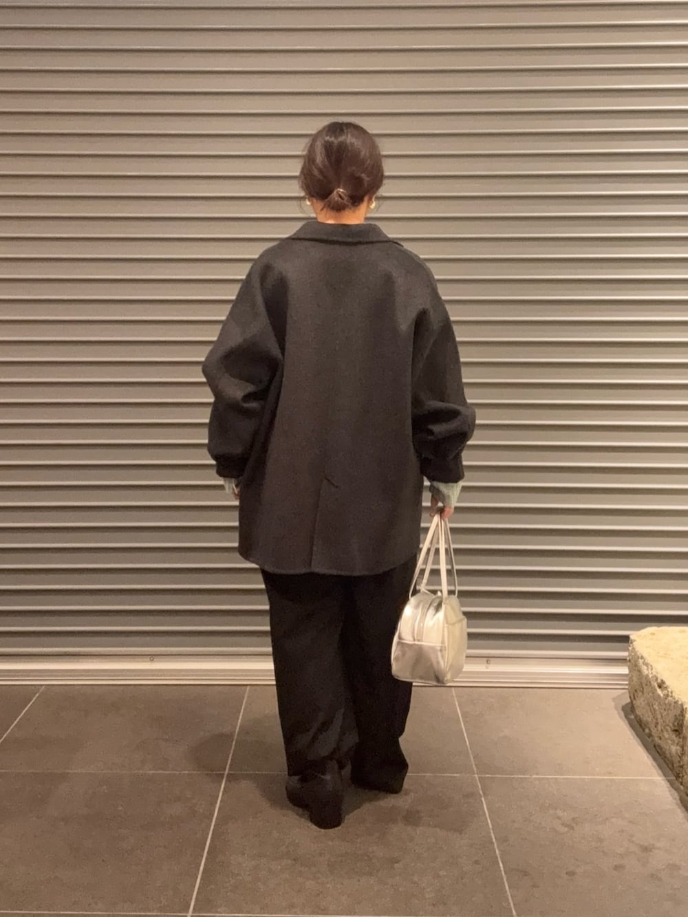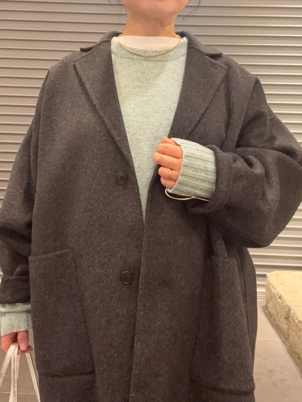 さらっと着れるウールアウターです。ウール100%で軽く、とても暖かいです。滑らかで柔らかい素材感で、上品な印象で着れます。袖は私には少し長かったので折って着てみました。