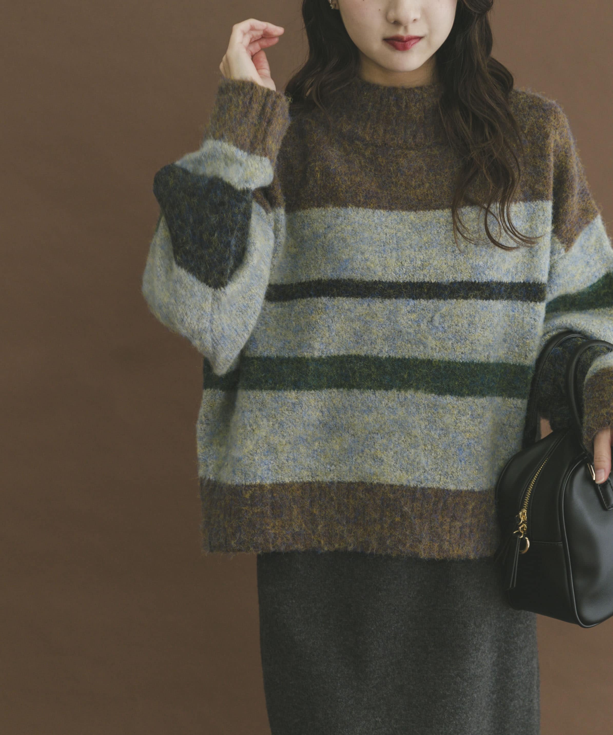 温かみのあるボーダー柄が印象的なニットは