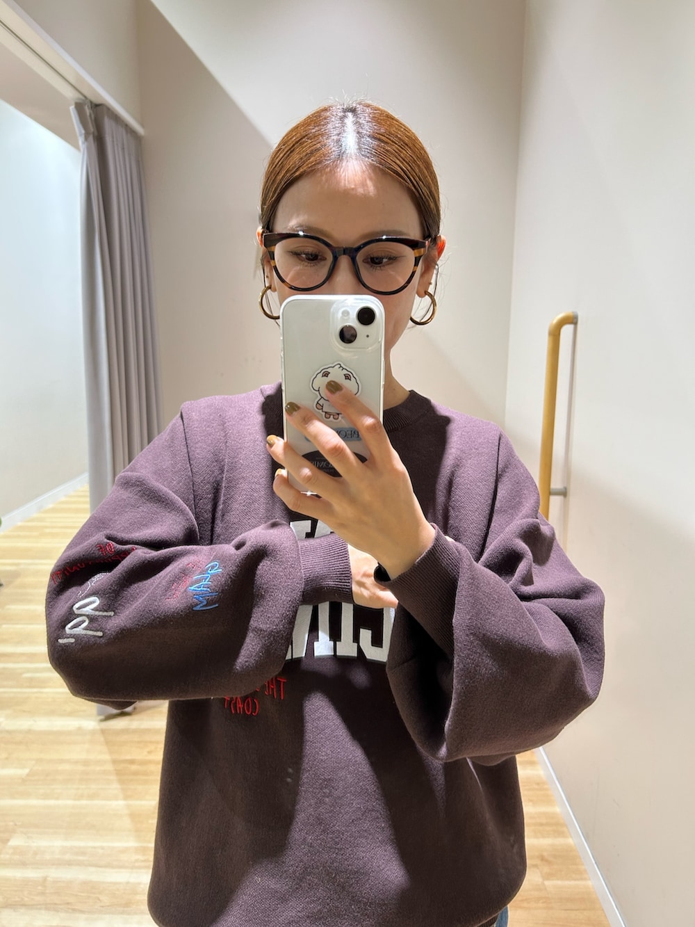 スウェットのリラックス感のある、色々なデザインの刺繍がポイントになったロゴニット。