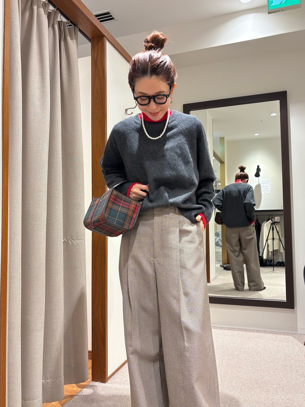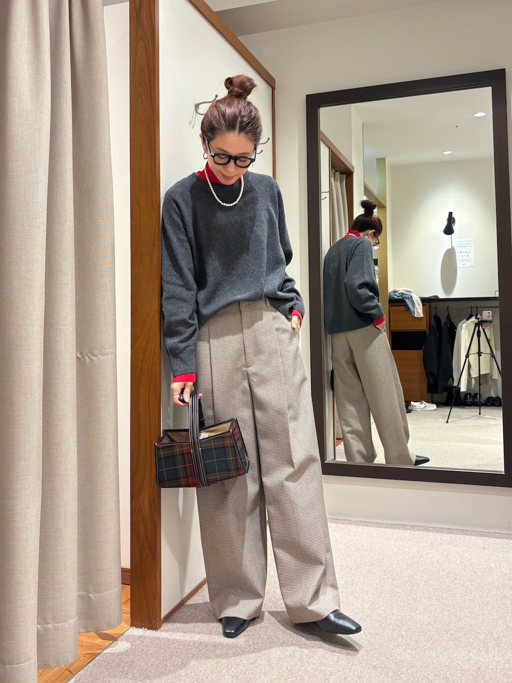 URBAN RESEARCHウールブレンドチェックワイドパンツ- 着用カラー: