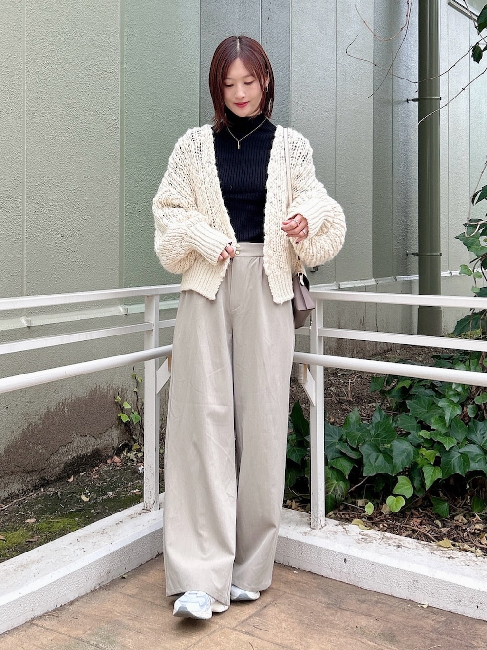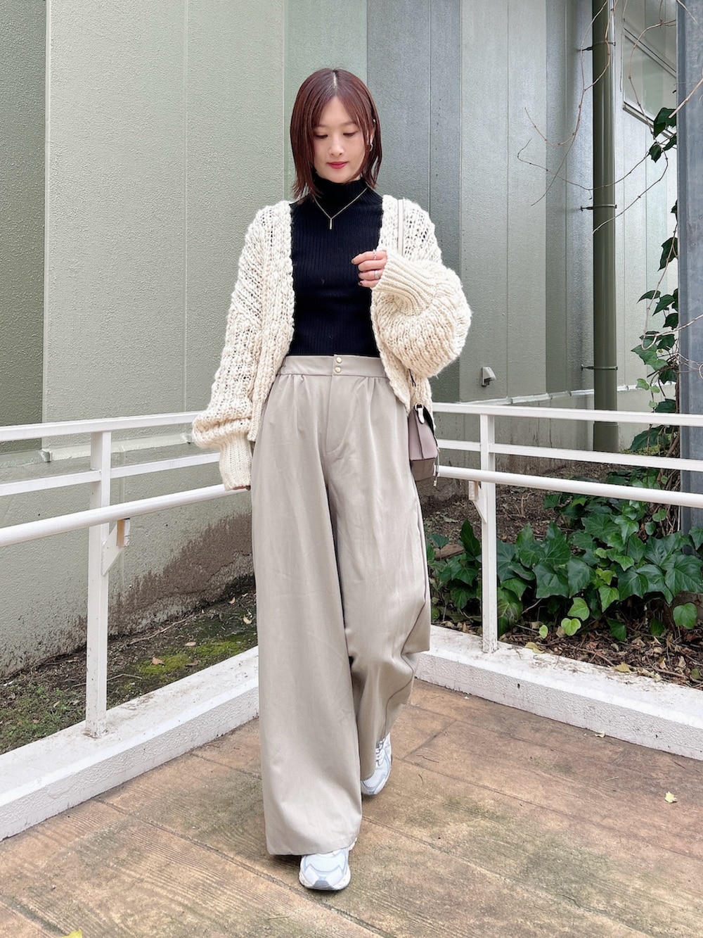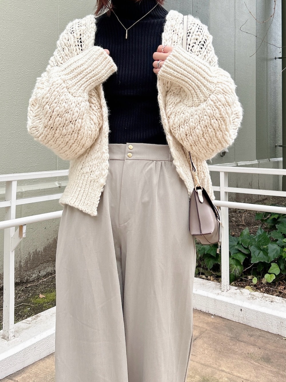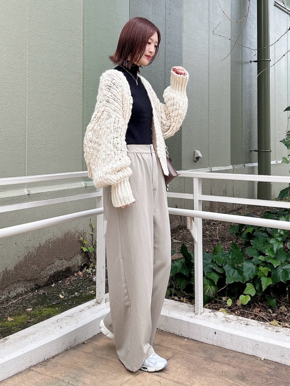 ✔︎ハイネックのリブニットは着回し力抜群で着やすいので一枚持っていると重宝します!