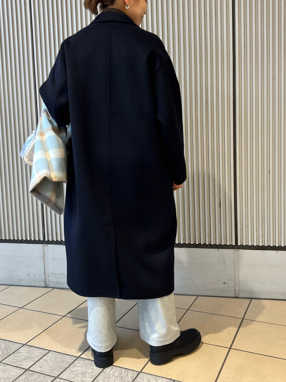 アウターに羽織っている、FORK&SPOONのコートは裏地のないリバーコートで、軽くて暖かく、今すぐ着るのにぴったりです🙆♀️しっかりと長さがあるため、高身長さんにおすすめしたいアイテムです!