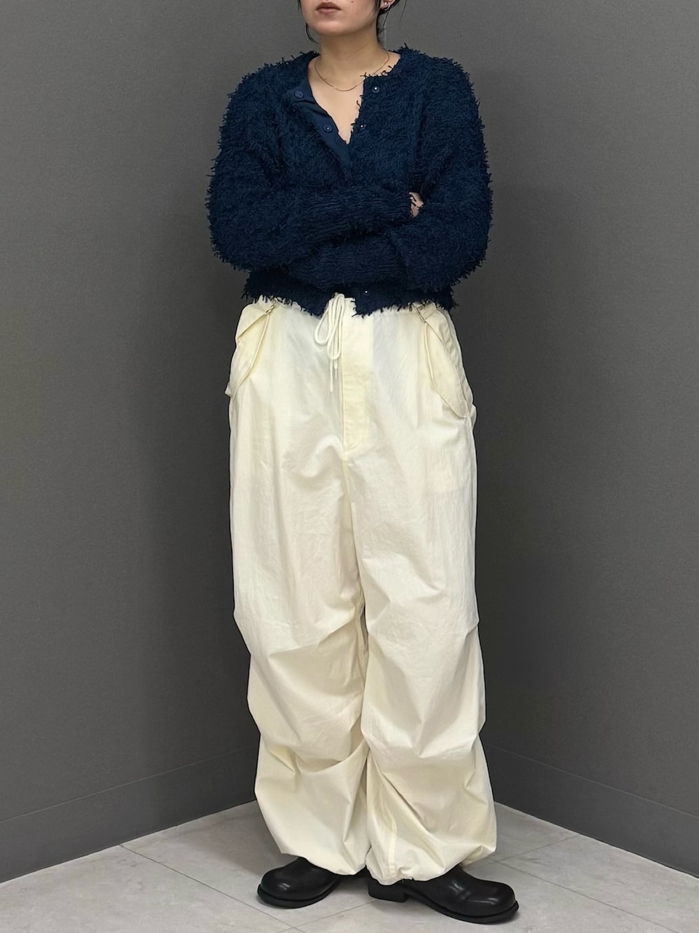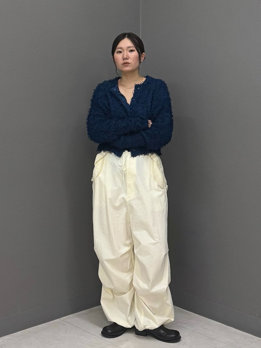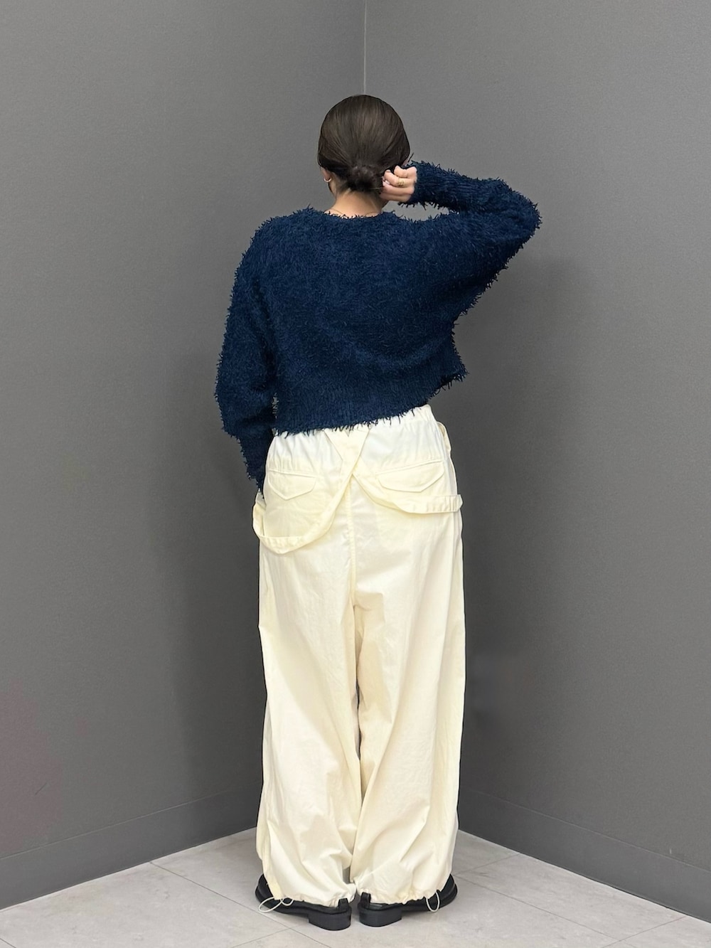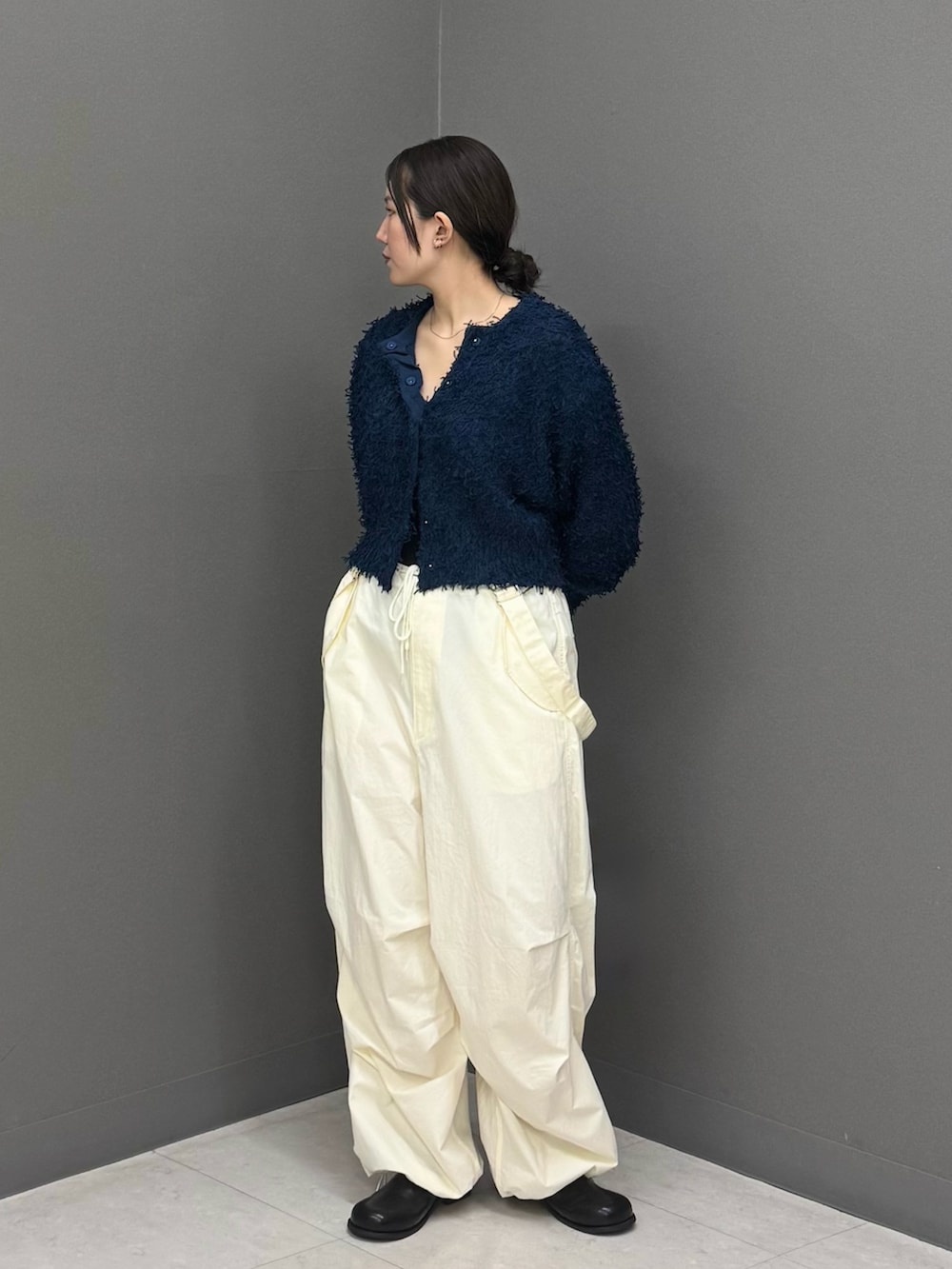 程よいコンパクトな丈感や袖がたまるシルエットもポイント!