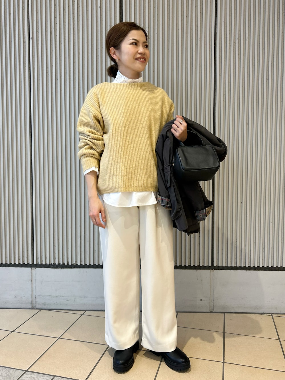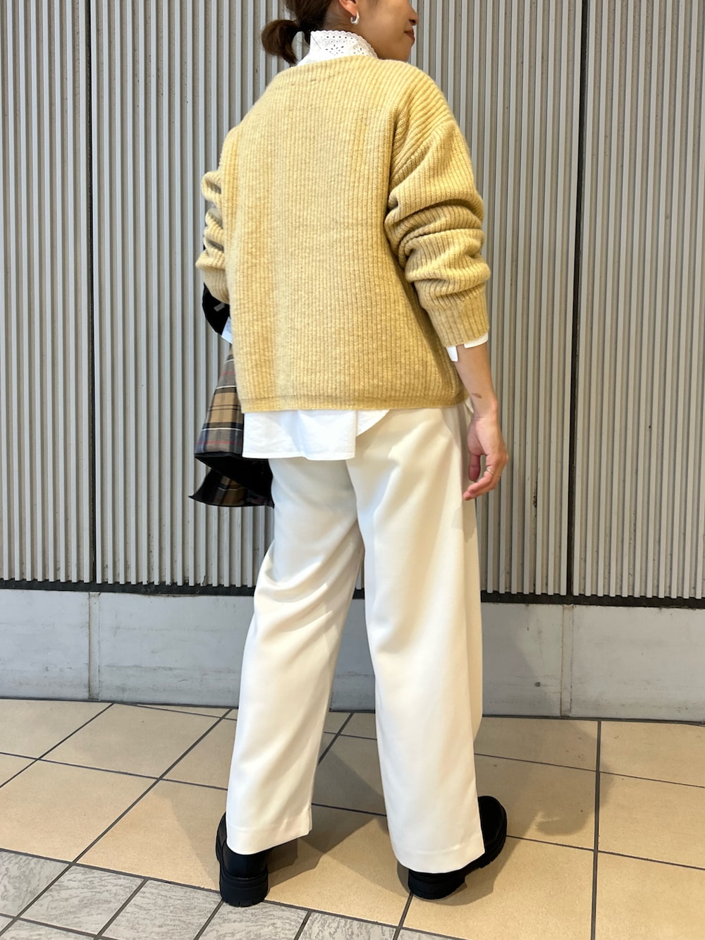 衿がレースのブラウスをレイヤードしてポイントにしたり、淡色コーディネートでまとめて、お友達とお洋服のお話でも弾むようなスタイリングにまとめました🍋