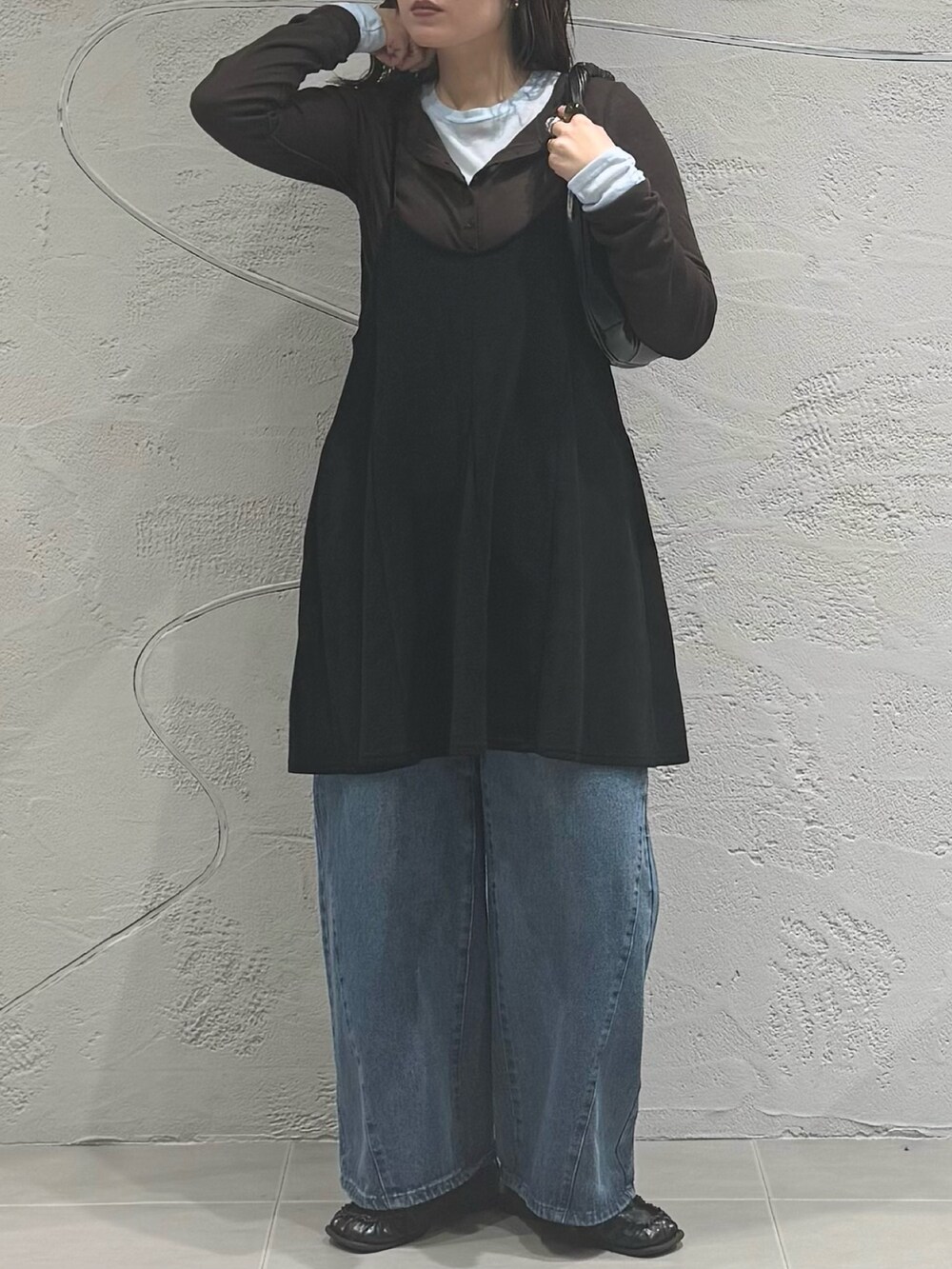 中のカットソーは袖と裾両サイドにギャザーが入っていてさりげないアクセントに✨