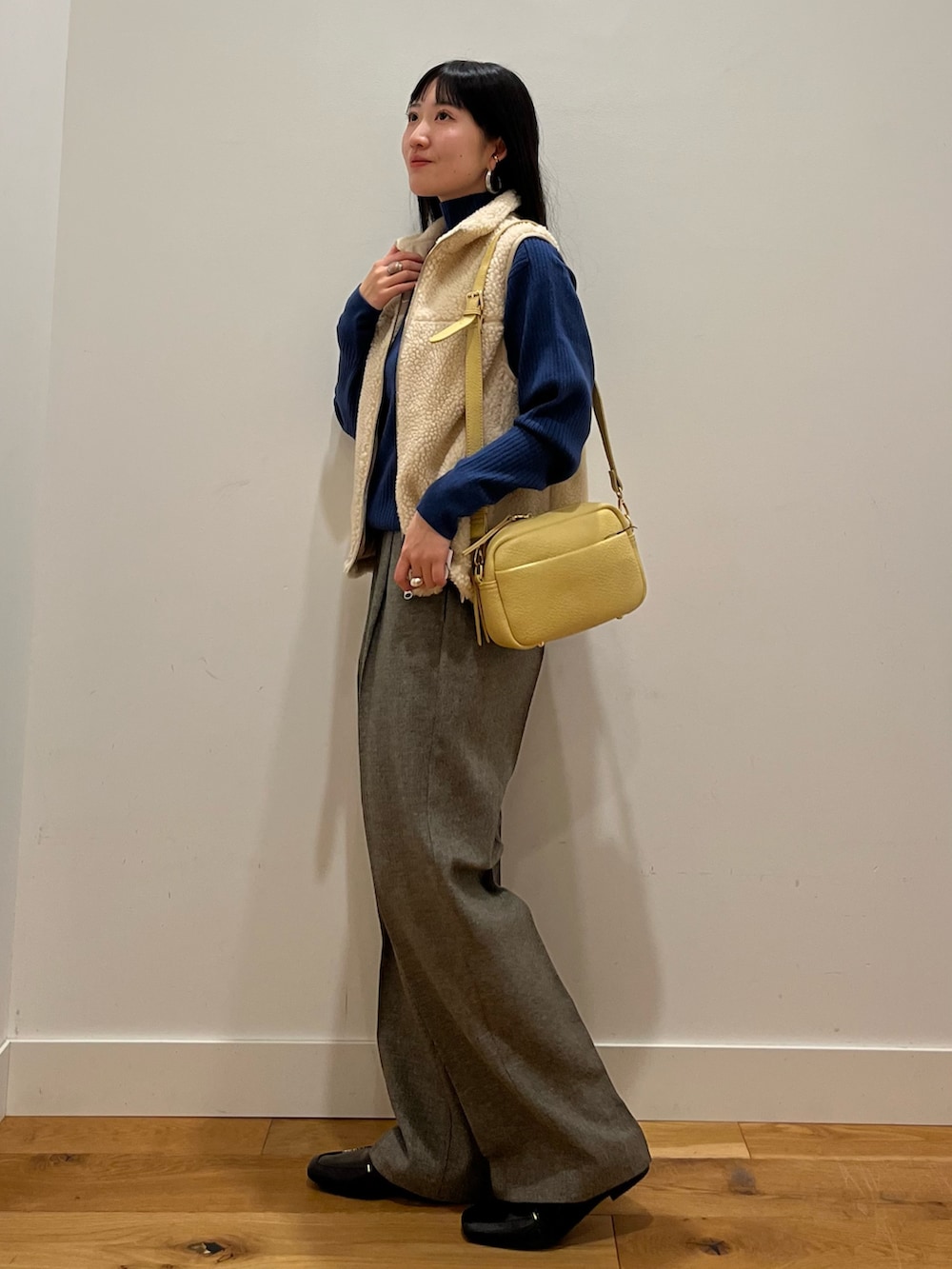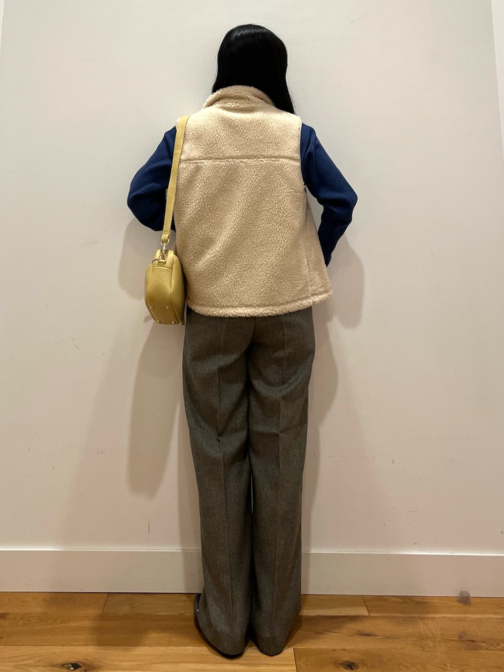 カジュアルなお出かけコーデを組んでみました!ボアの温かみのあるボアのベストで、