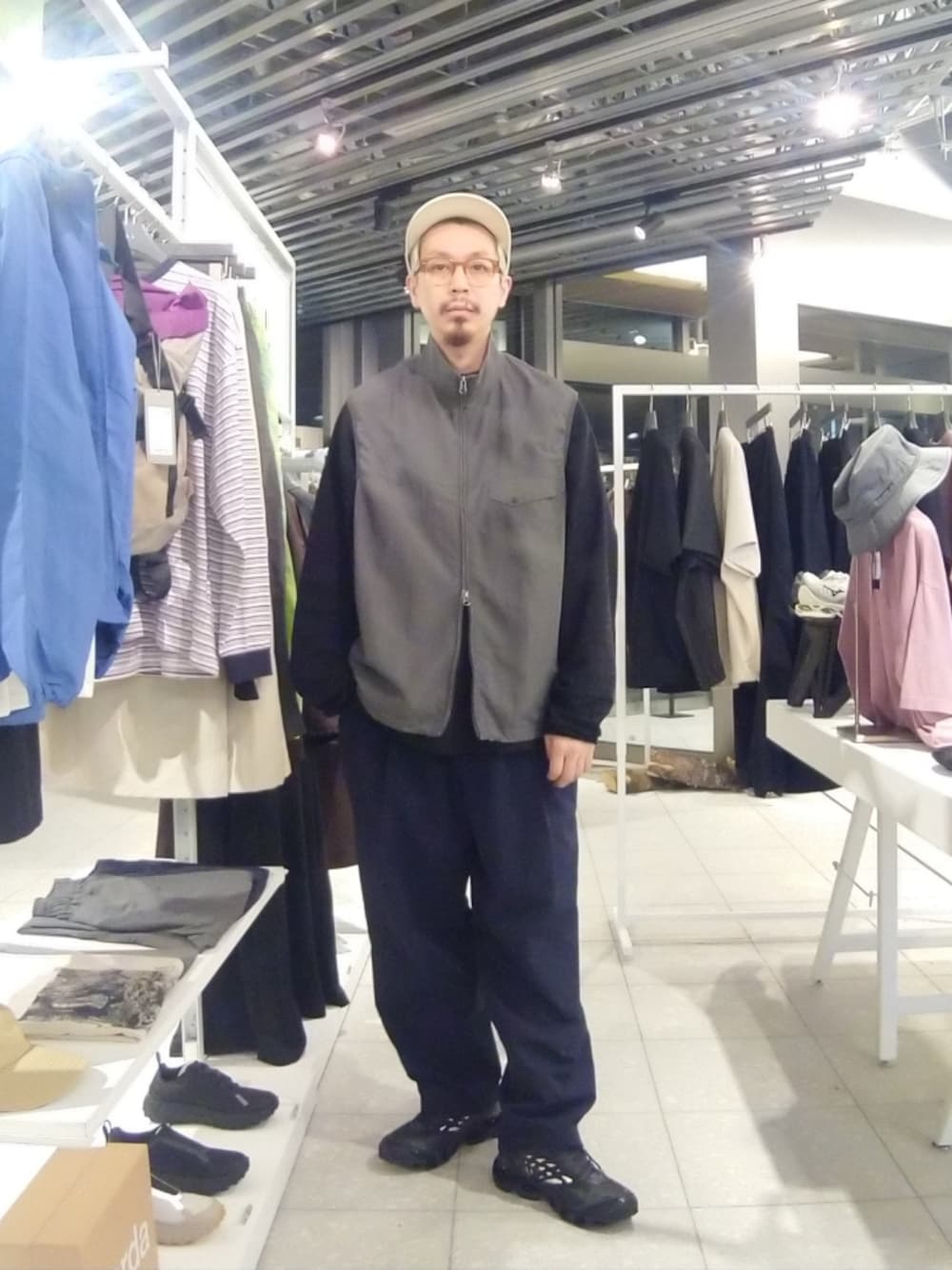 カジュアルなキャップやビルケンを使って、バランスをとっています。