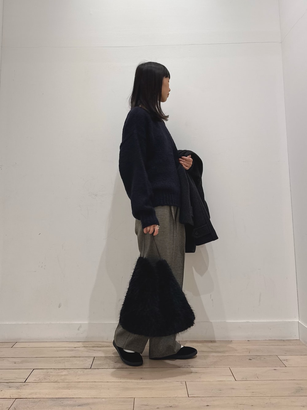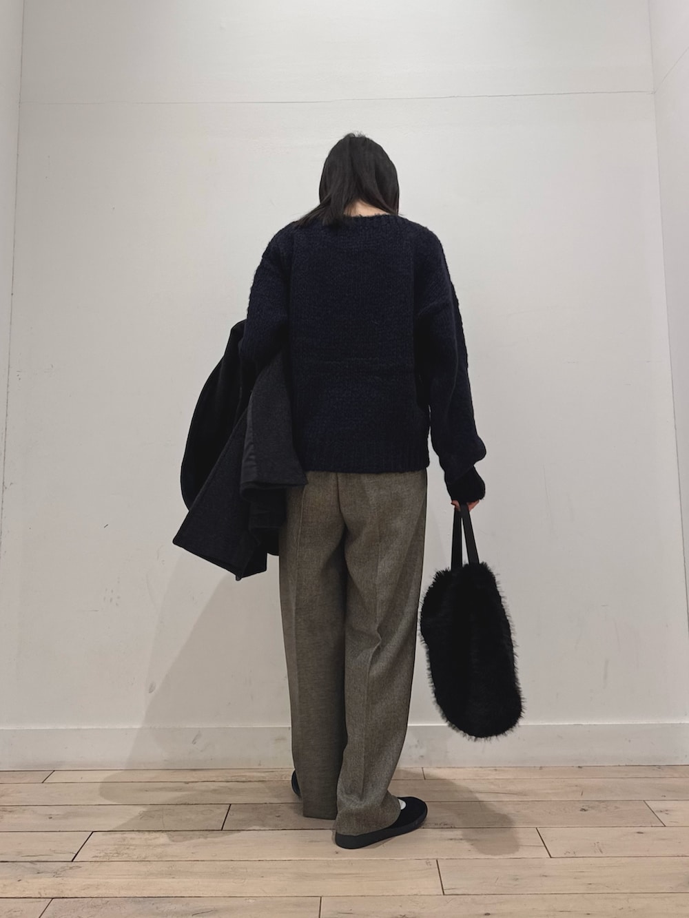 ニットは大きすぎない程よいサイズ感で、ざっくり編みなので重たい印象になりません◎