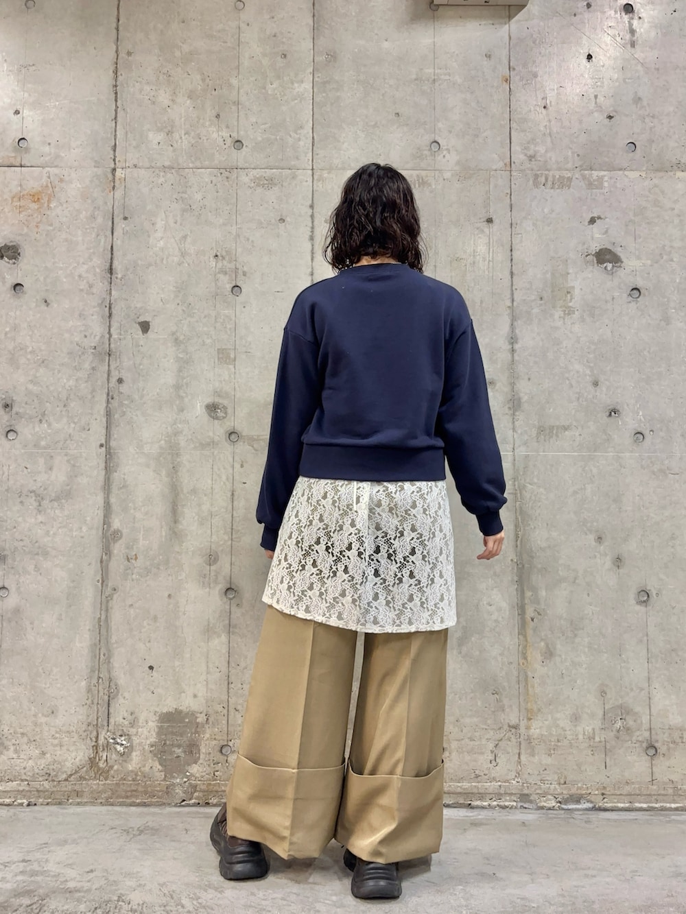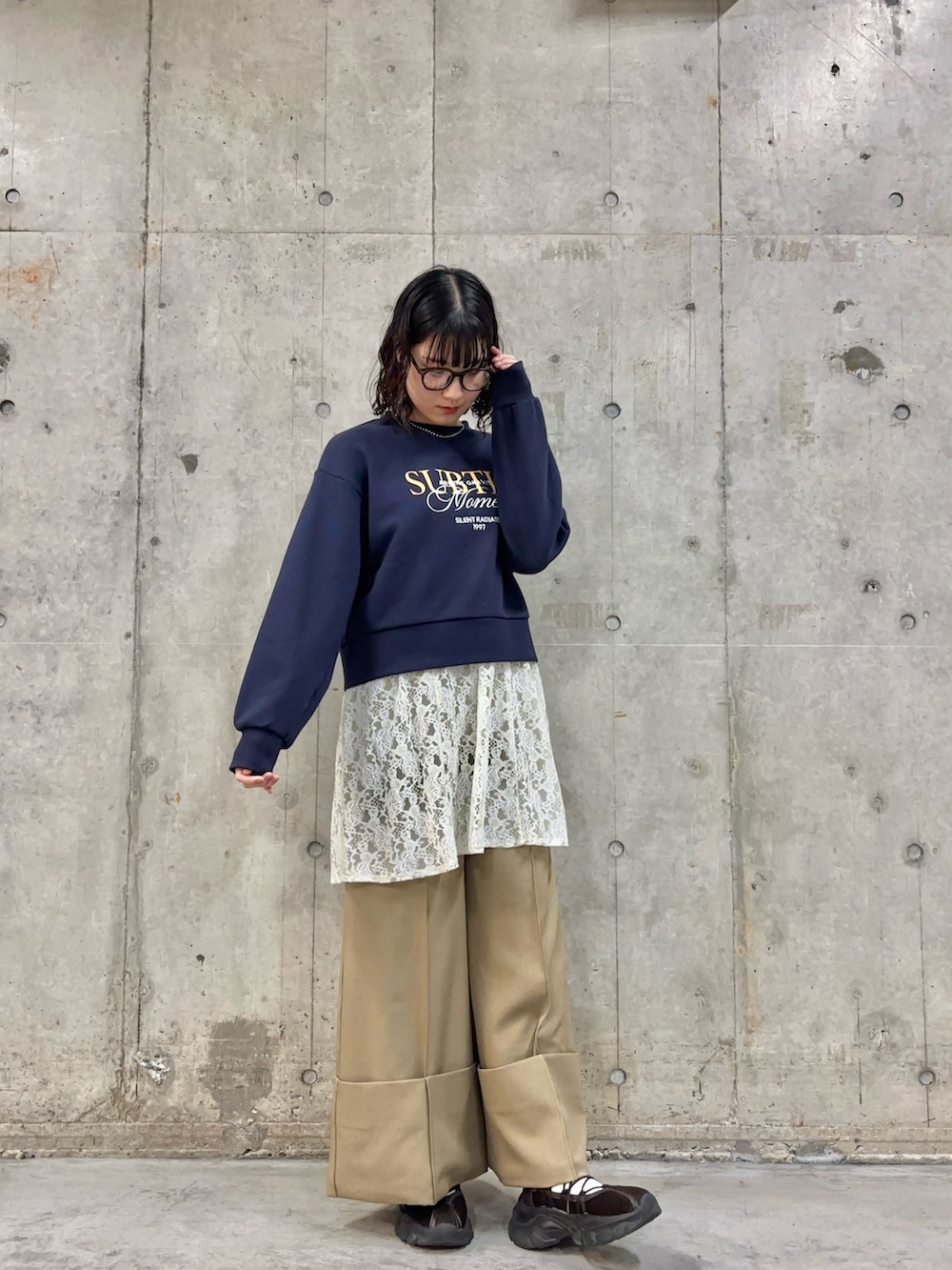 レイヤードできるレースチュニックを合わせ、甘めの印象になるバレエスニーカーで、雰囲気がガラッと変わるようにしてみました!