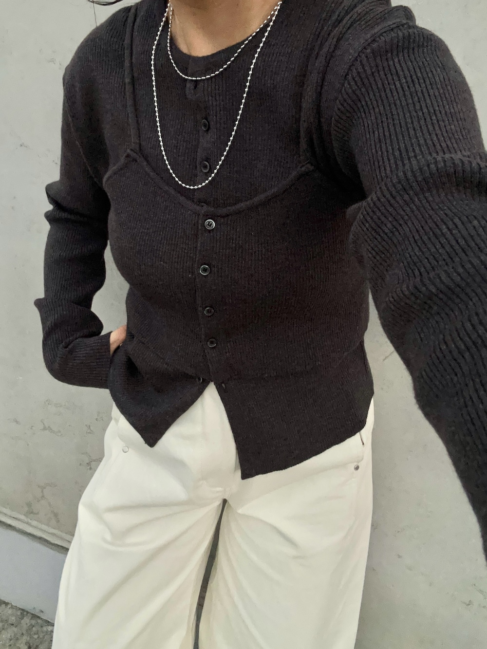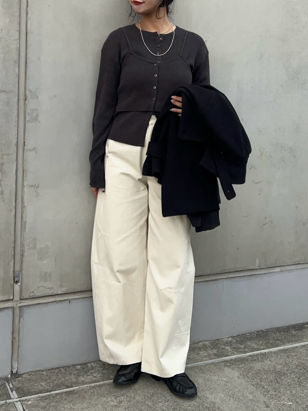 ビスチェとセットのカーディガンに太めのパンツを合わせてカジュアル合わせもかわいいです🙆🏻♀️
