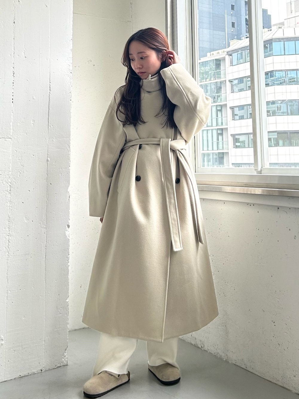 アーバンリサーチのチェスターコートは、上質ウールを使用していて、ゴワゴワ感なく柔らかで着心地抜群です。ロングコートですが、重さも気になりません。