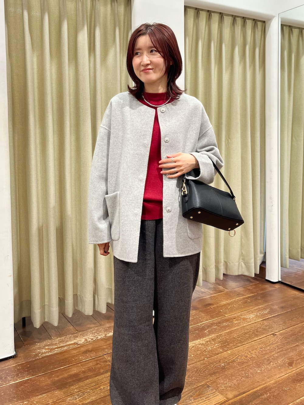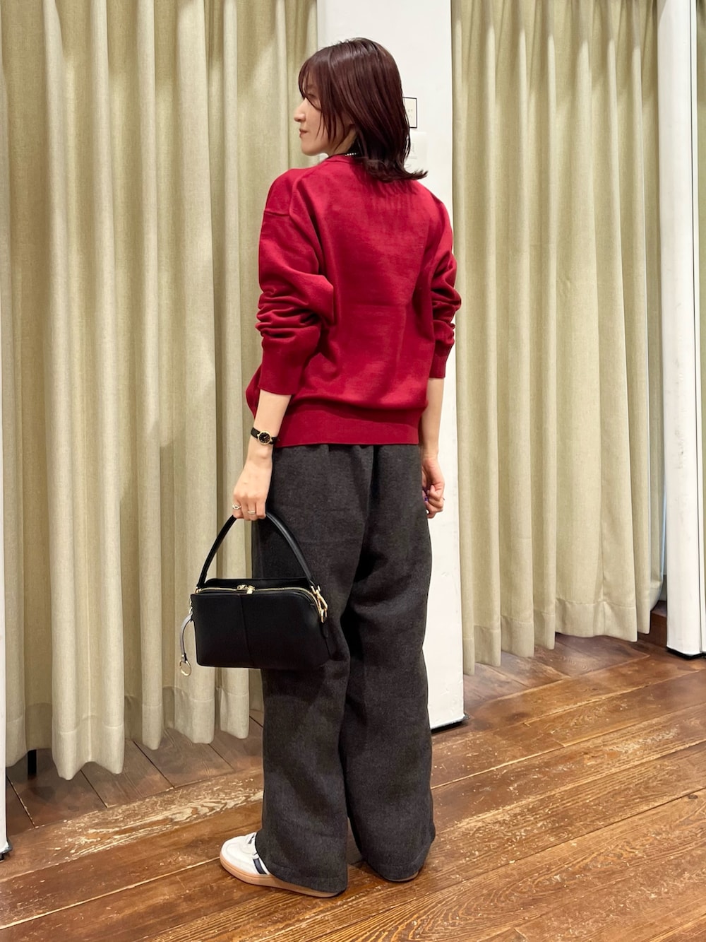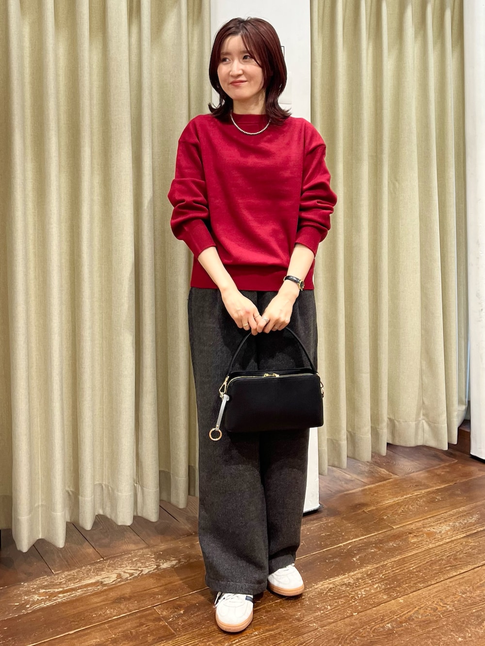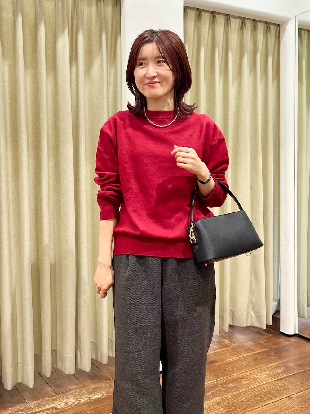 合わせたニットは大人気の200日ニットシリーズです!深みのある赤がイチオシのカラーです!