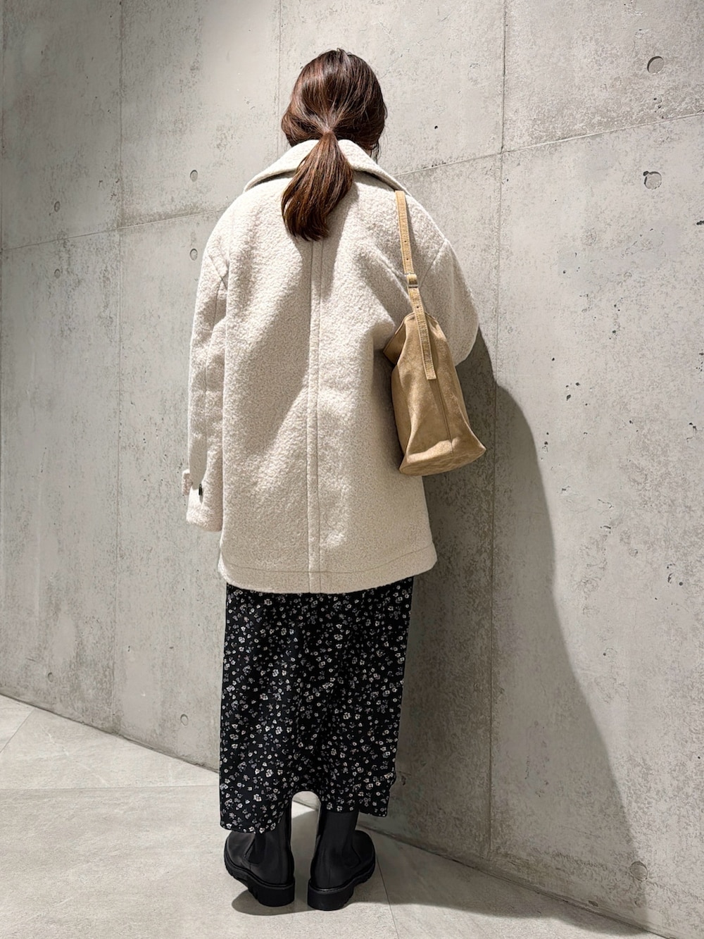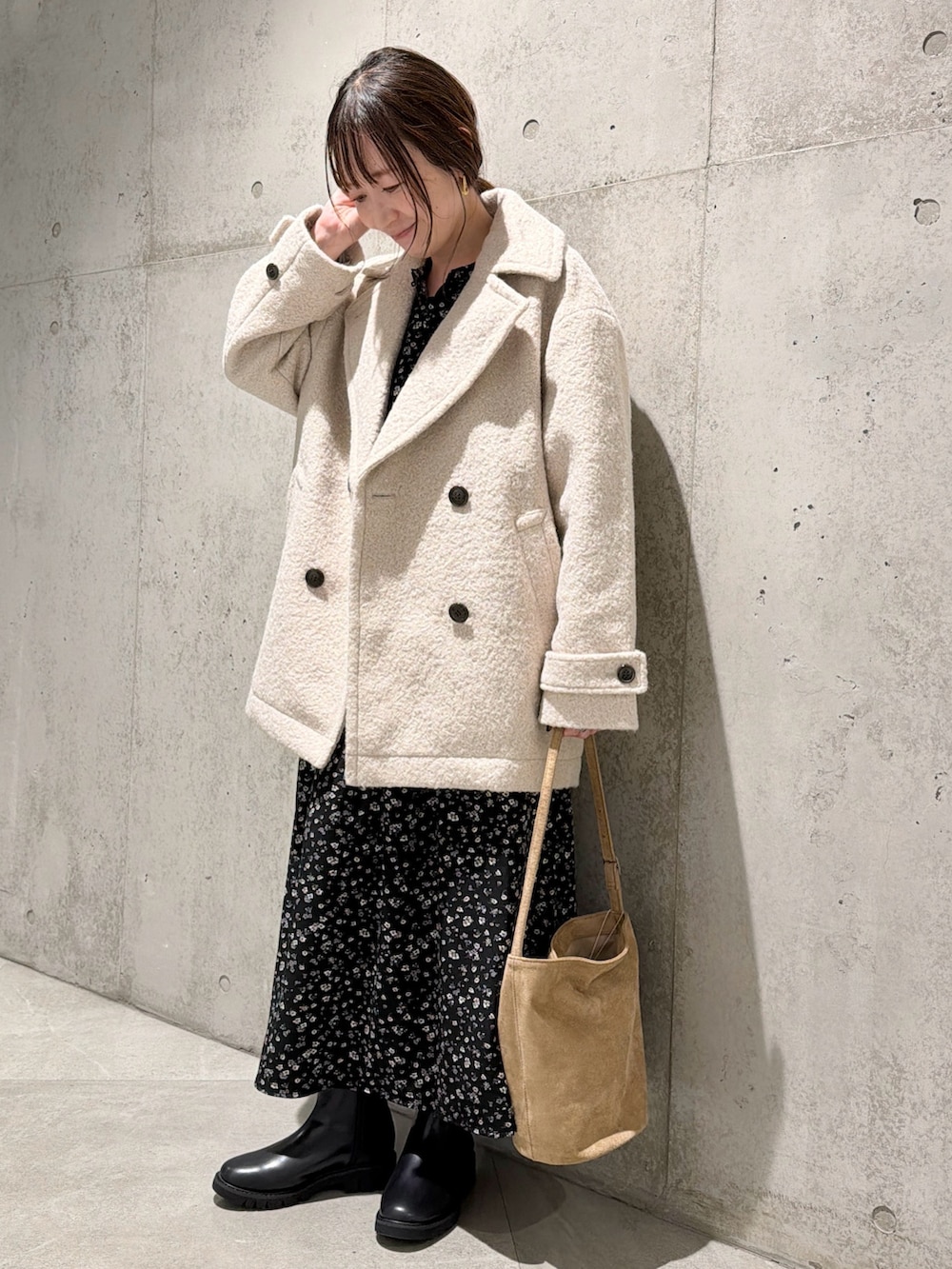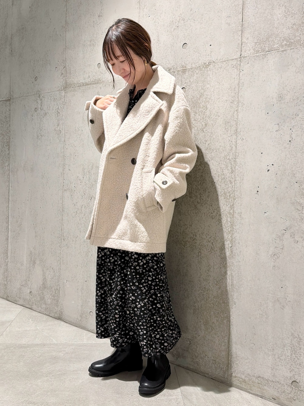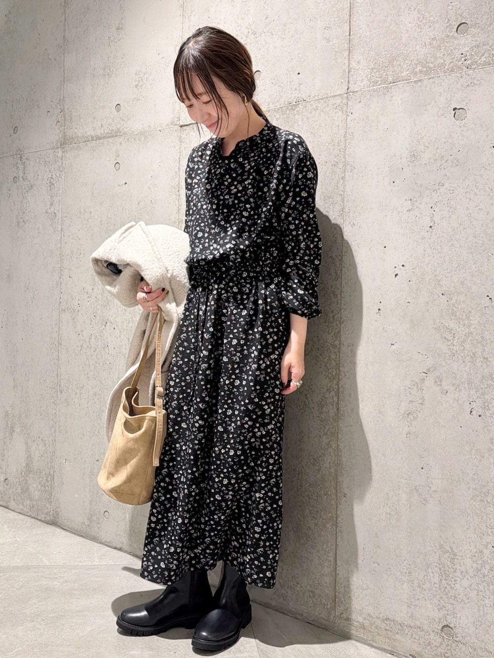 今回は、小花柄がフェミニンな印象のワンピースと合わせた、キレイめコーディネートです。