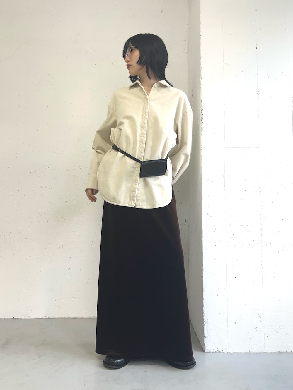 コーデュロイのシャツにベロアスカートを合わせて着てみました。