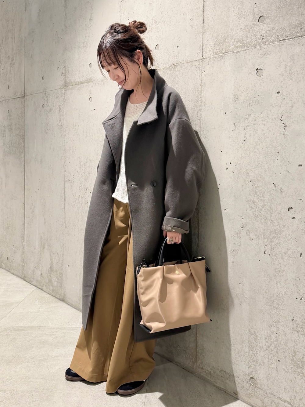 袖と肩周りもゆったりとしたサイズ感なので、厚手のニットなども楽に着ていただけます。